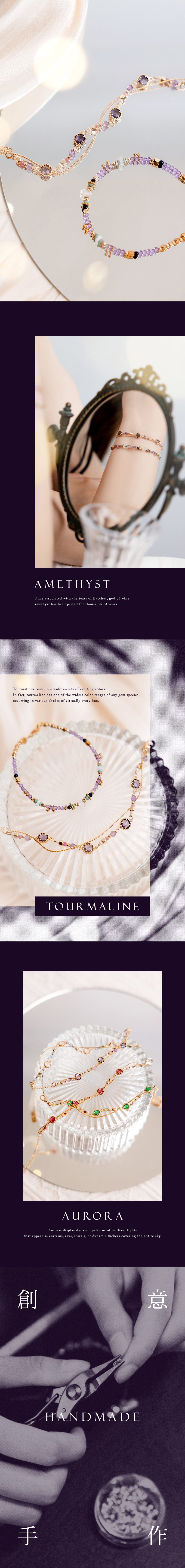 紫水晶、粉碧璽、淡水珍珠、水晶琉璃、黃銅鍍18K金