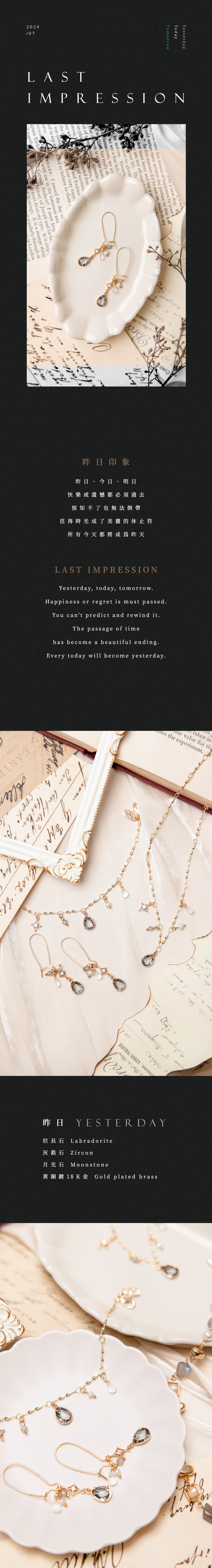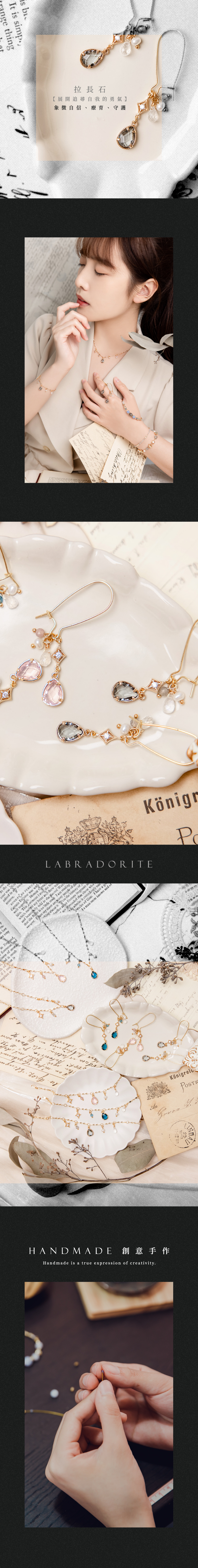 拉長石、灰鋯石、月光石、淡水珍珠、黃銅鍍18K金