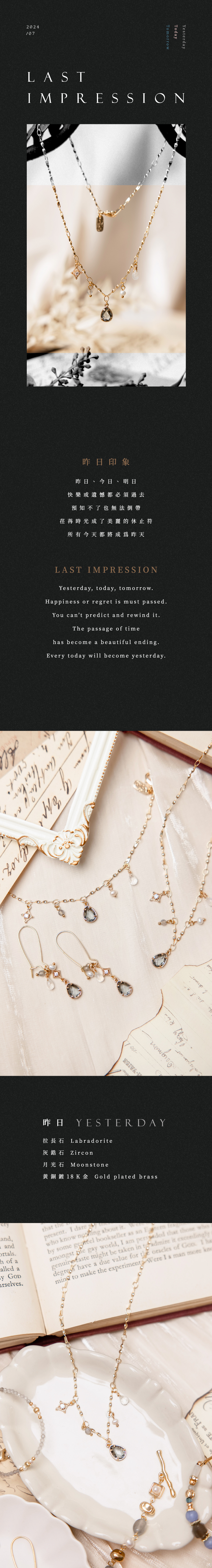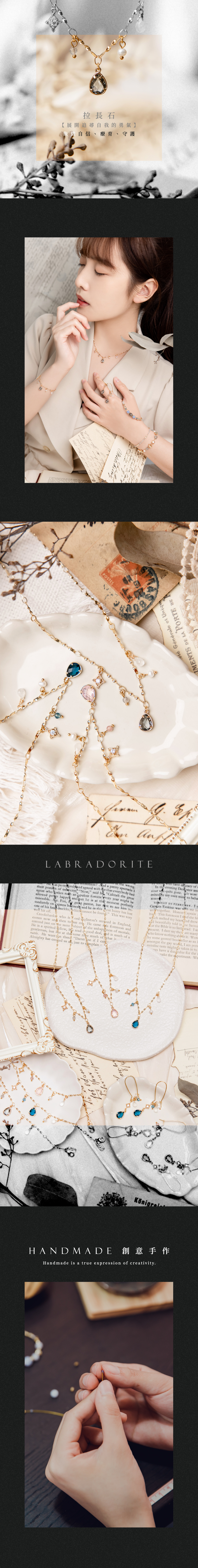 拉長石、灰鋯石、月光石、淡水珍珠、黃銅鍍18K金