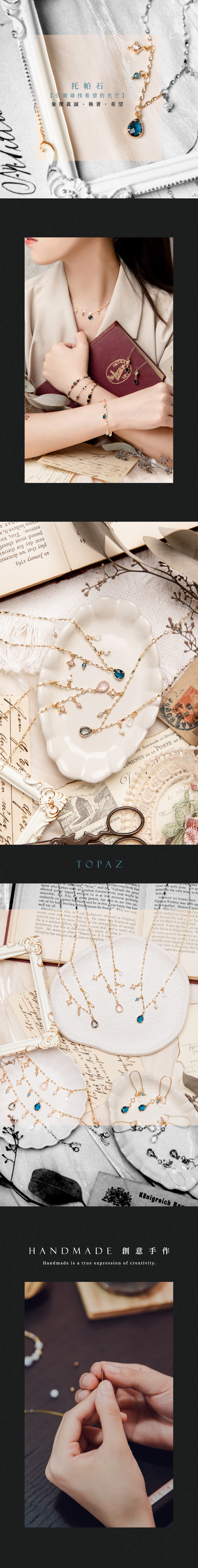 托帕石、藍鋯石、月光石、淡水珍珠、黃銅鍍18K金