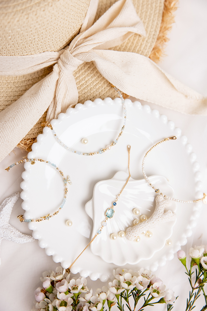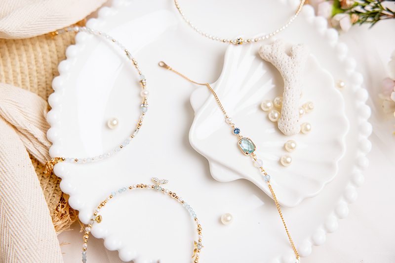 蛋白石、磷灰石、珍珠、水晶琉璃、彩色鋯石、黃銅鍍18K金