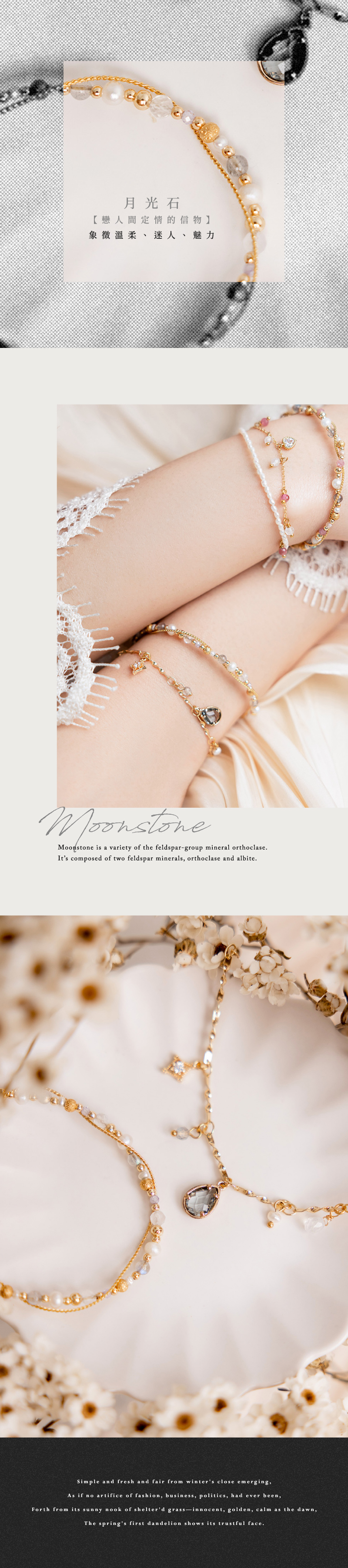月光石 Moonstone:蘊含溫柔與滋養的能量,使人吸引來好的愛情。