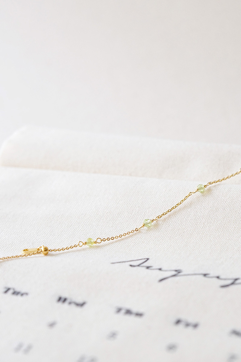 橄欖石 Peridot:在古希臘語中為「黃金石」的意思,富含正面能量使人充滿信心。