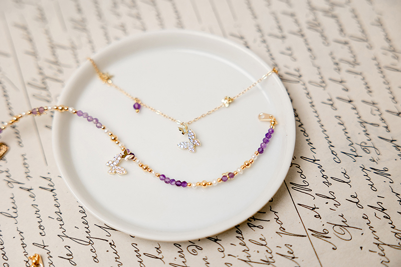 紫水晶、珍珠、鋯石、黃銅鍍18K金