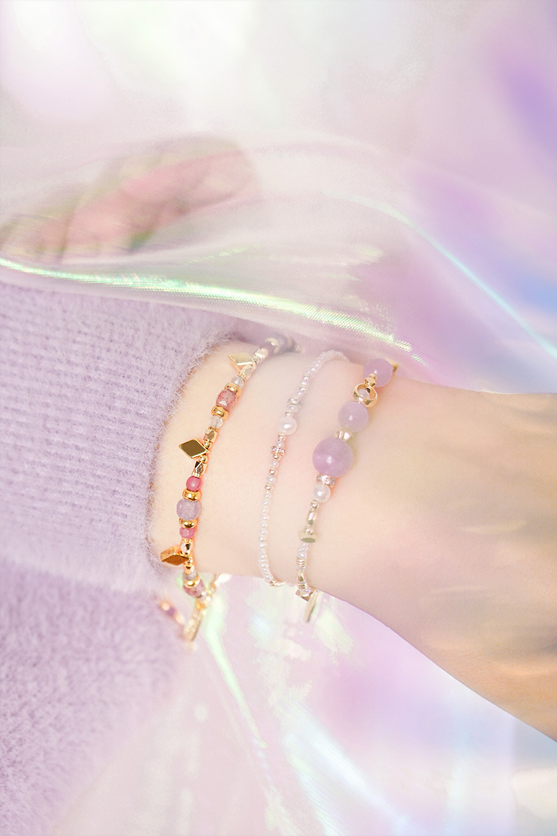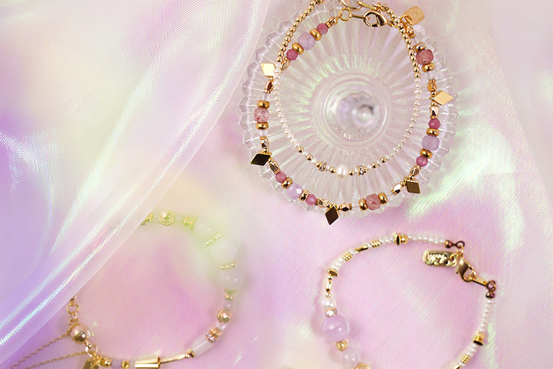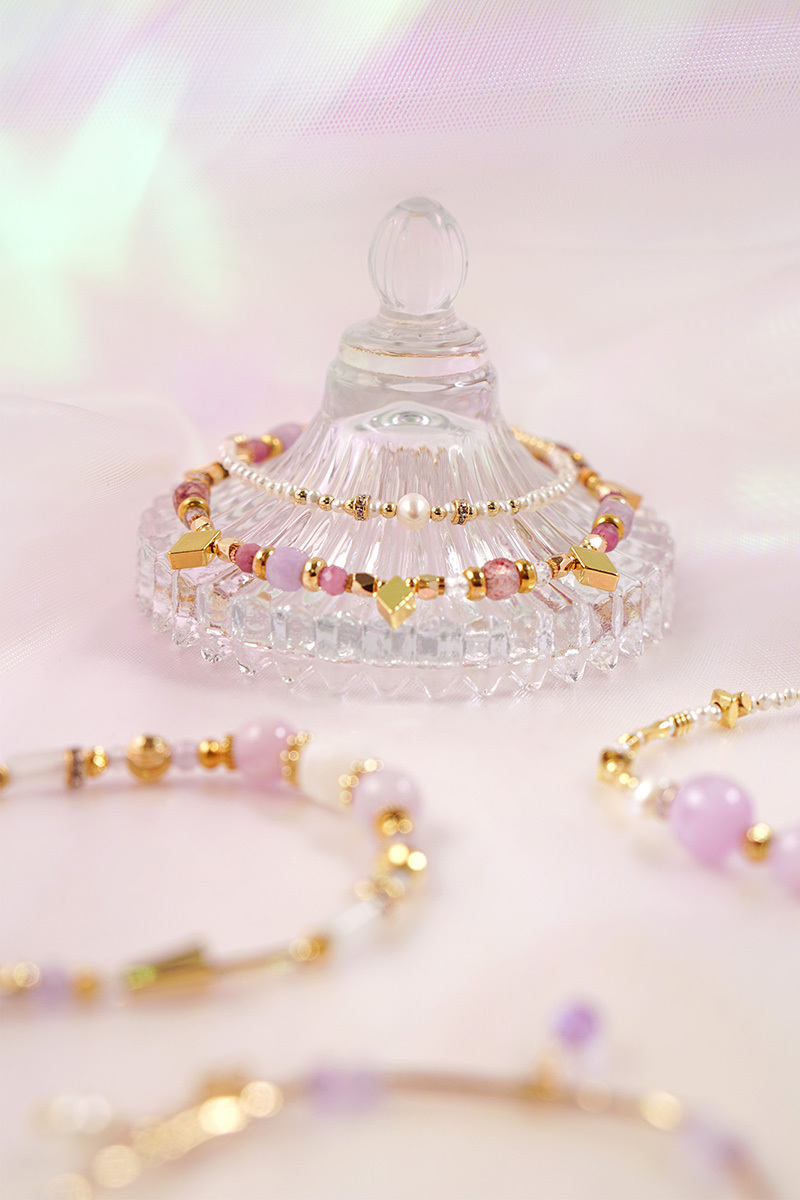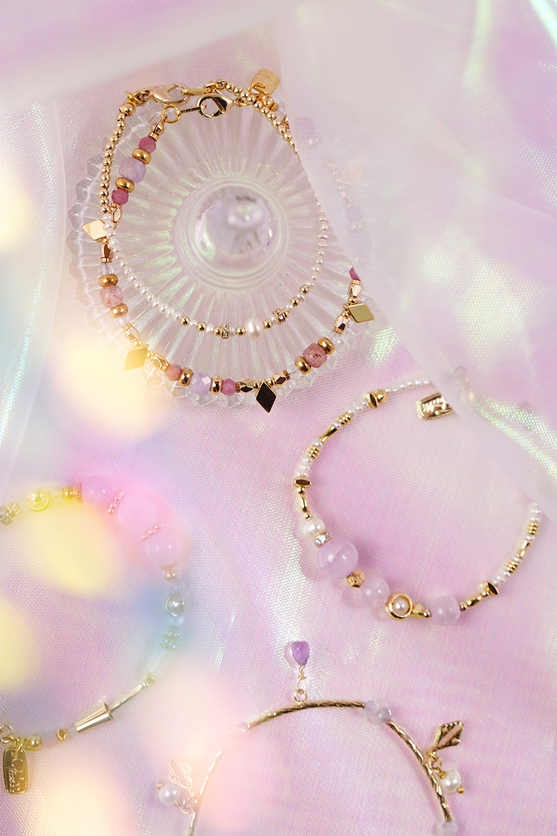 紫水晶、草莓晶、粉碧璽、白水晶、黃銅鍍18K金