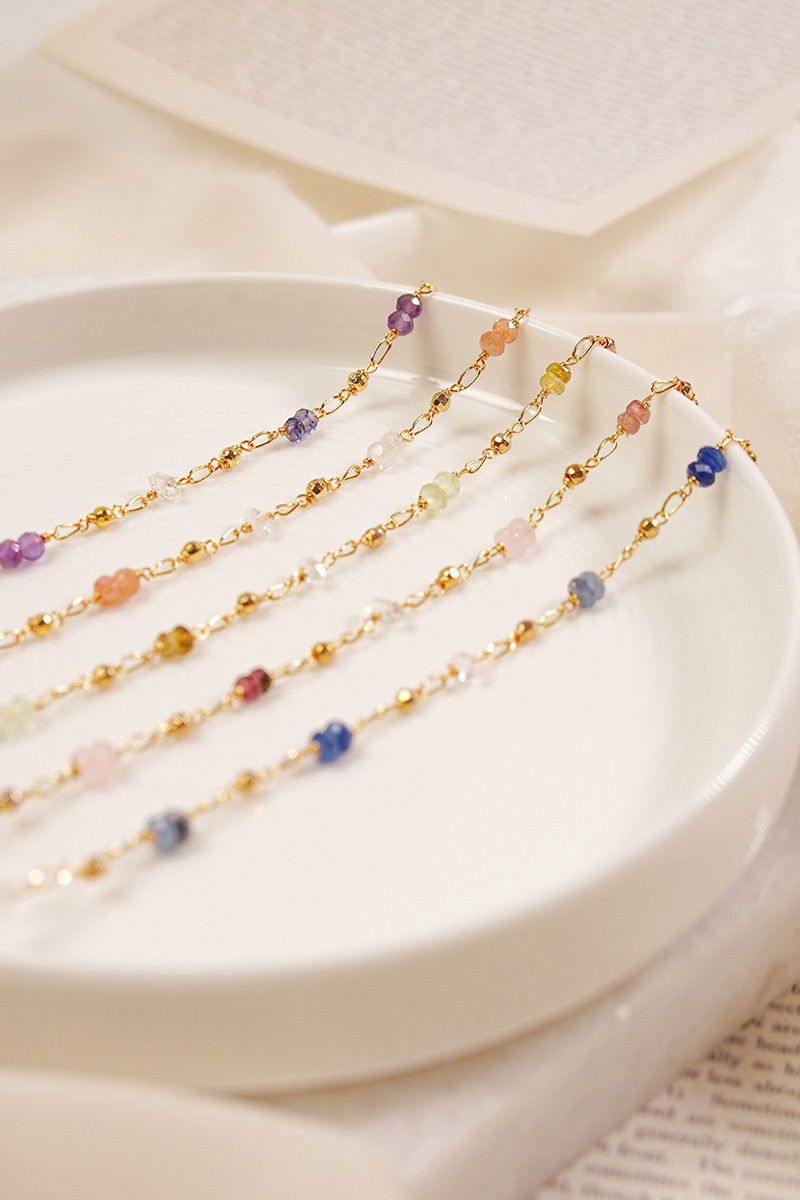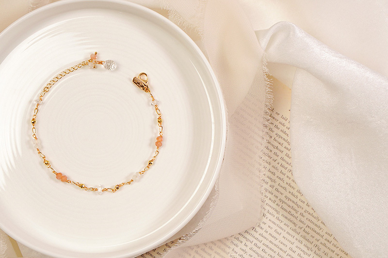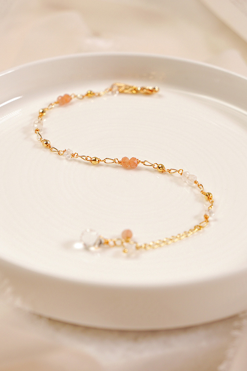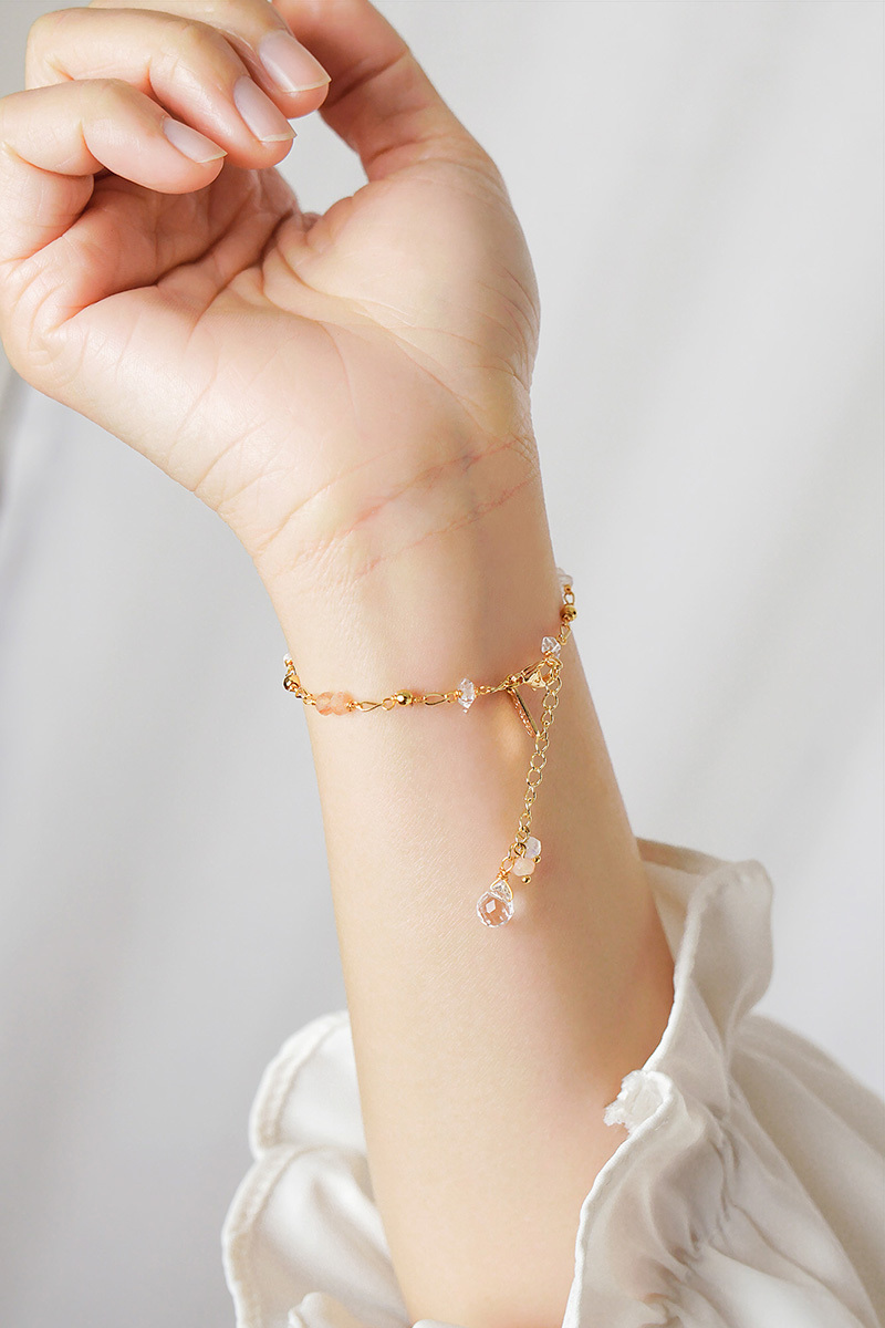 金草莓晶、白水晶、石英石、月光石、黃銅鍍18K金