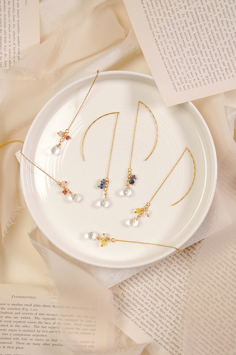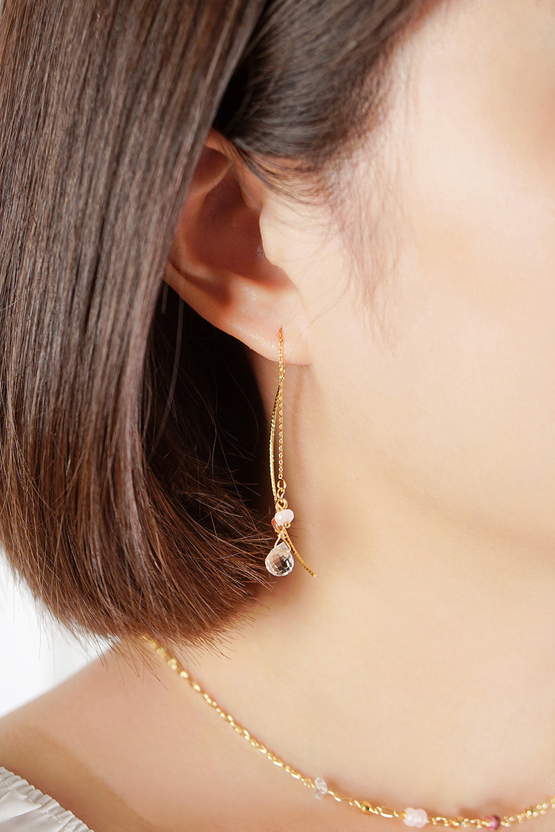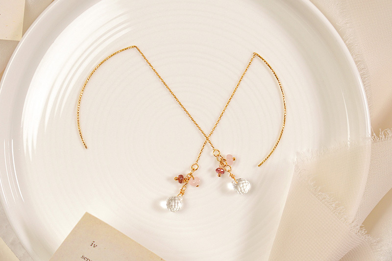 粉碧璽、粉晶、石英石、黃銅鍍18K金