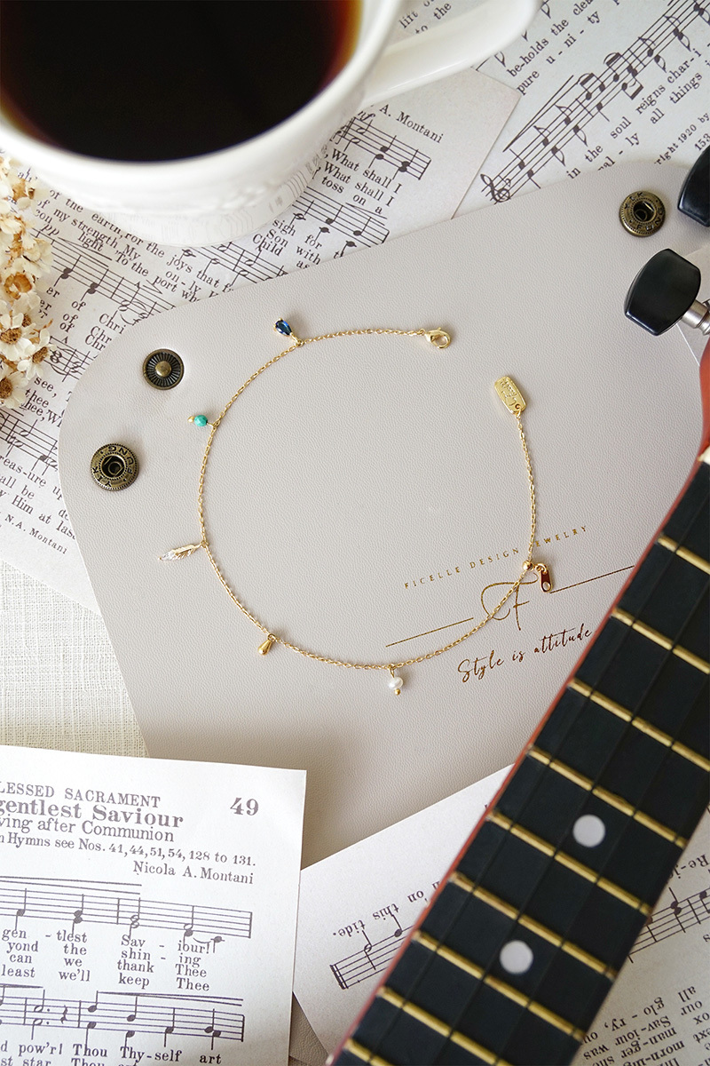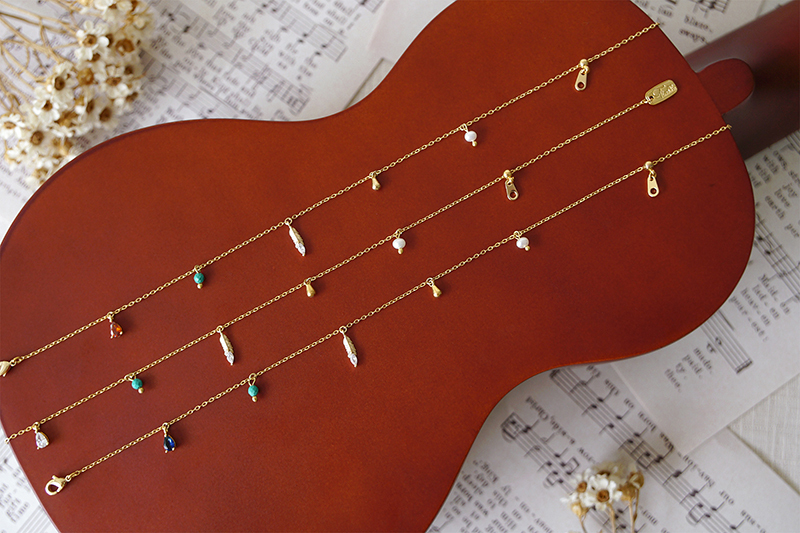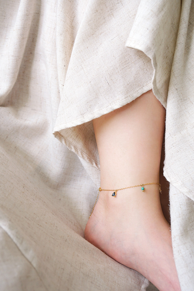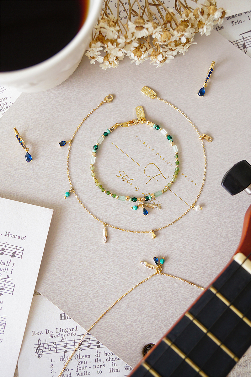藍鋯石、綠松石、淡水珍珠、黃銅鍍18K金
