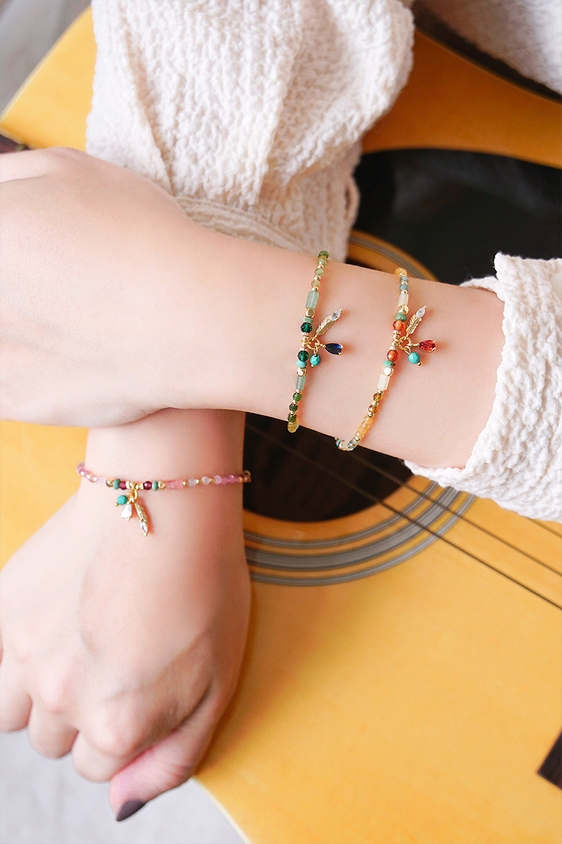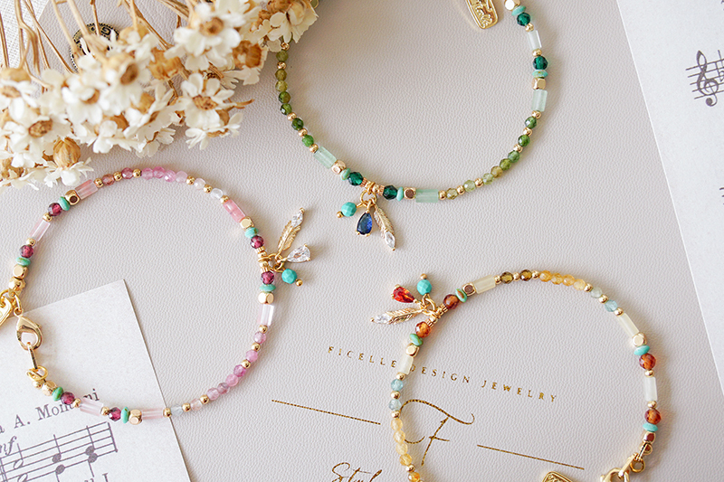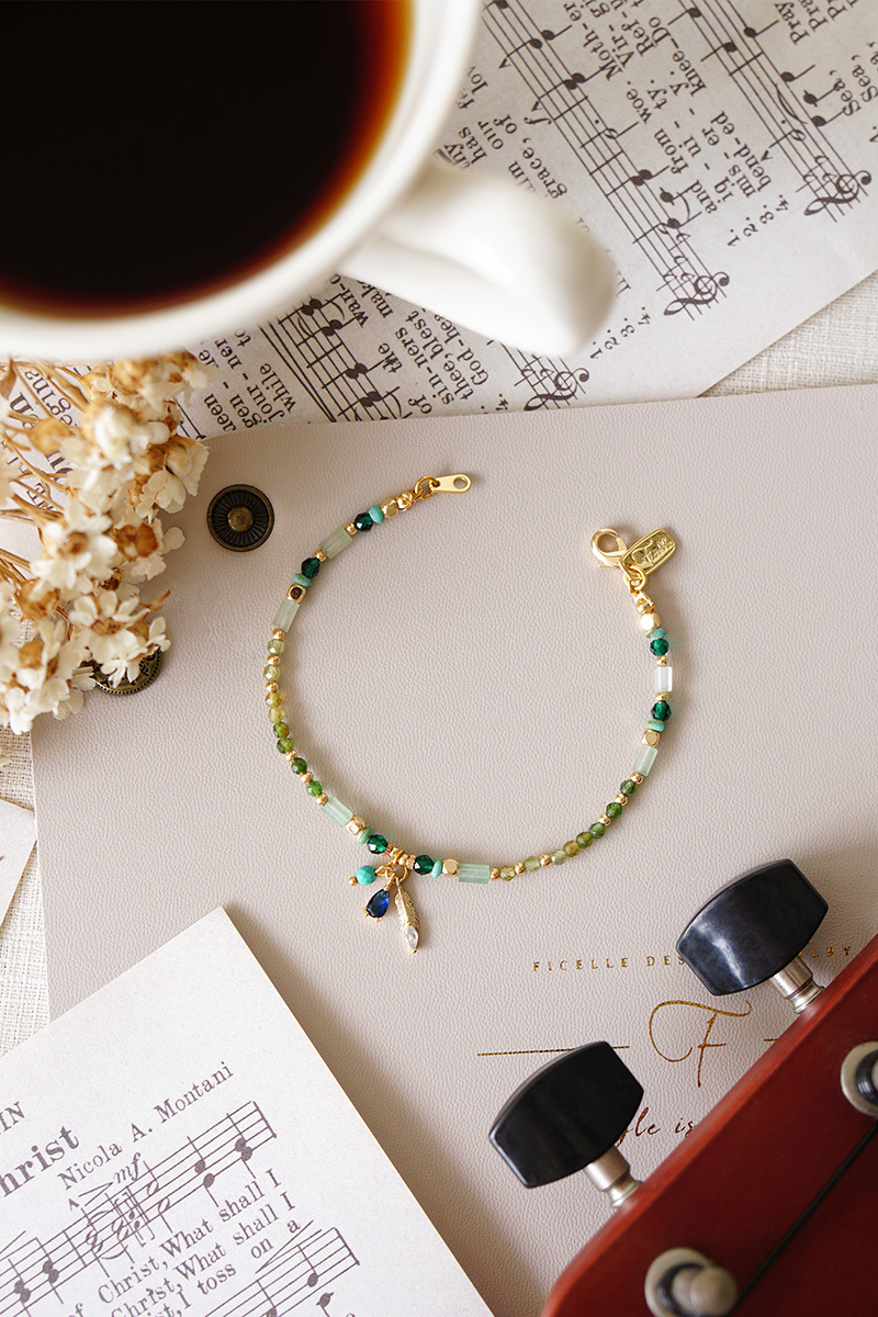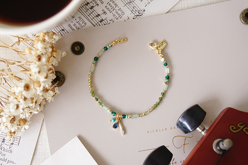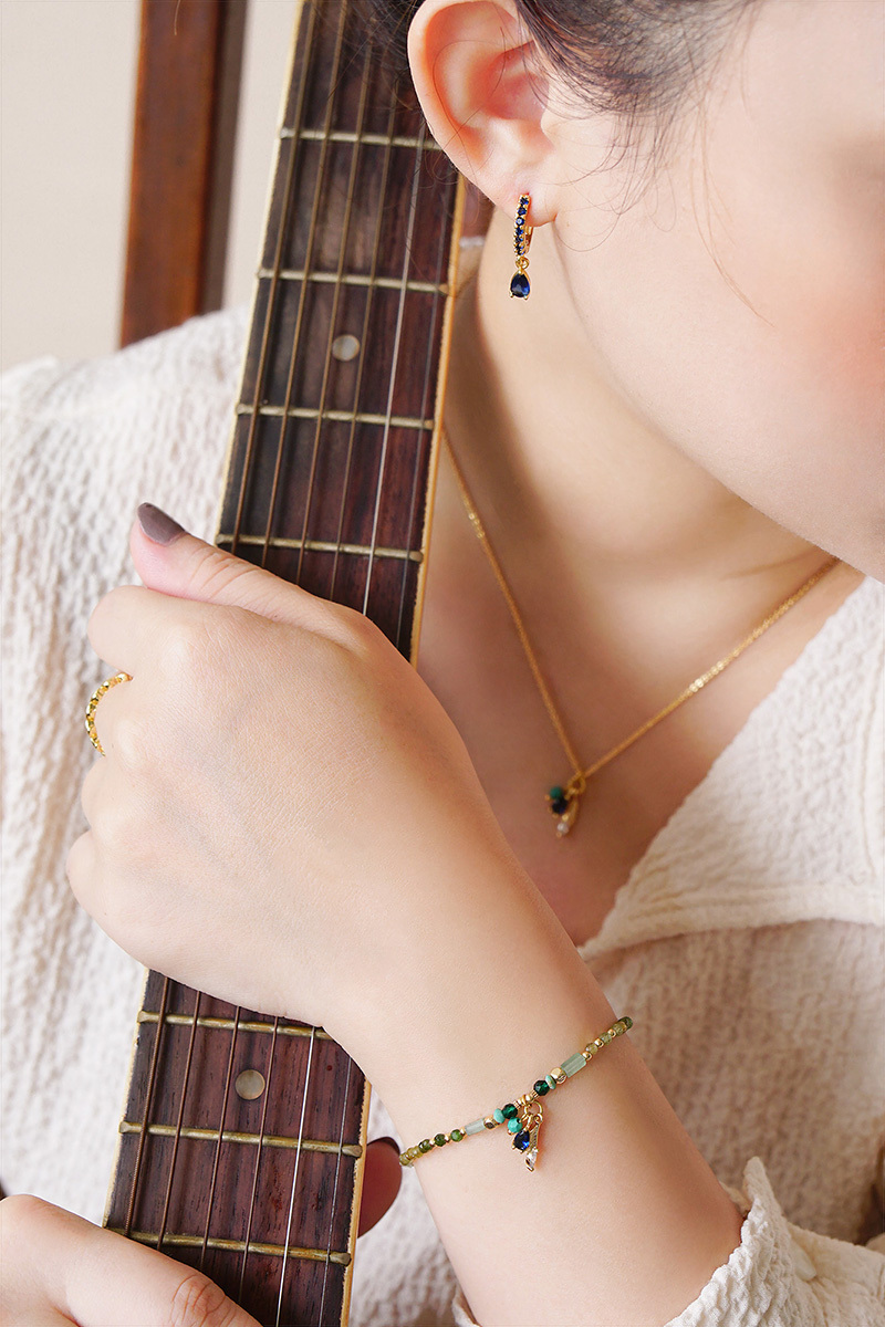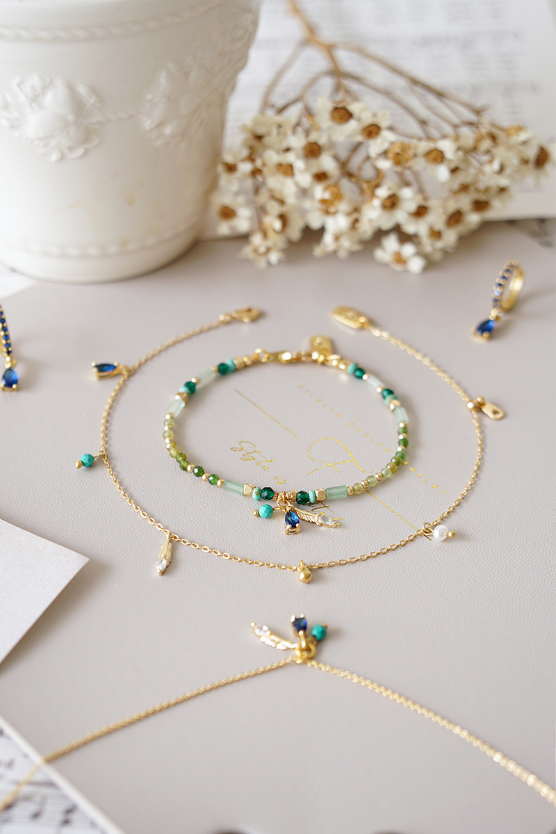 綠碧璽、東陵玉、綠松石、祖母綠、鋯石、黃銅鍍18K金