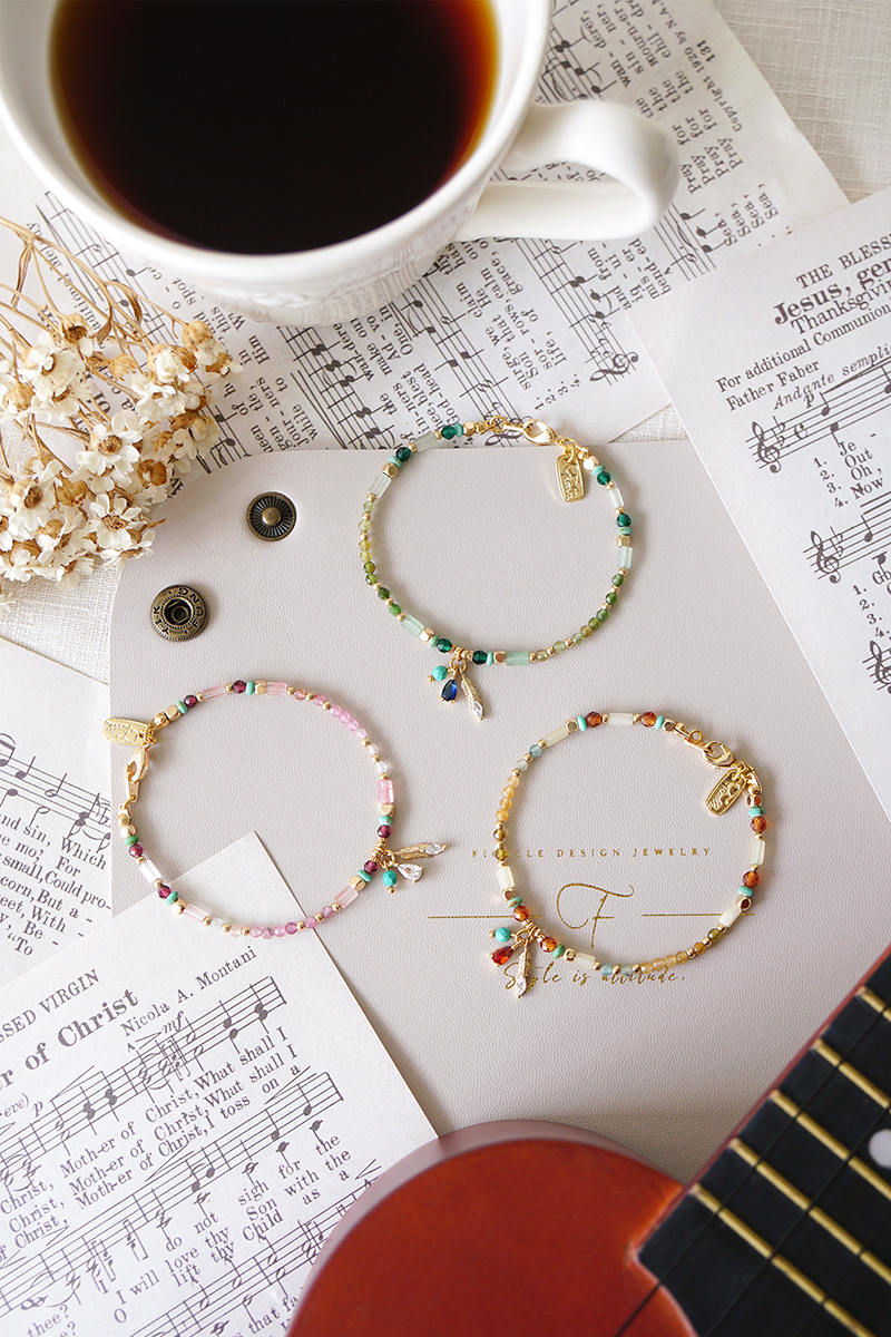 黃碧璽、黃玉、綠松石、橙石榴石、鋯石、黃銅鍍18K金
