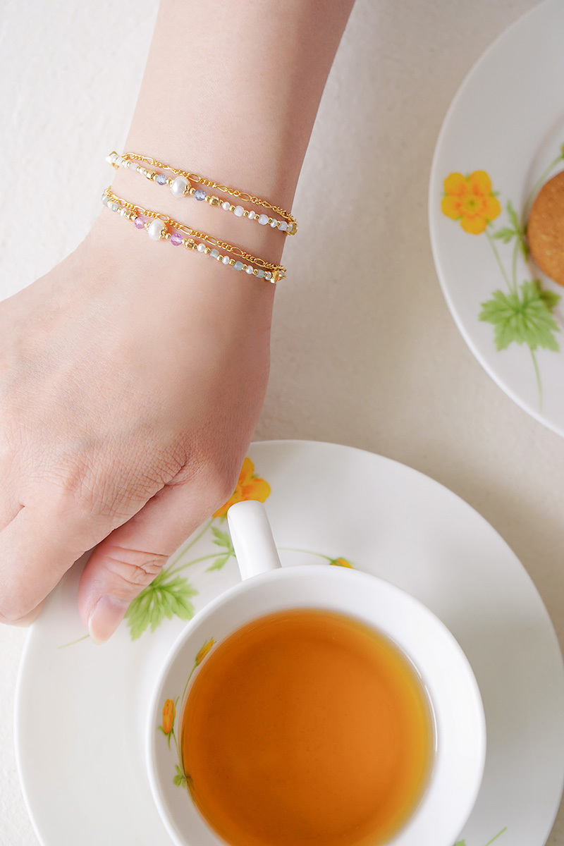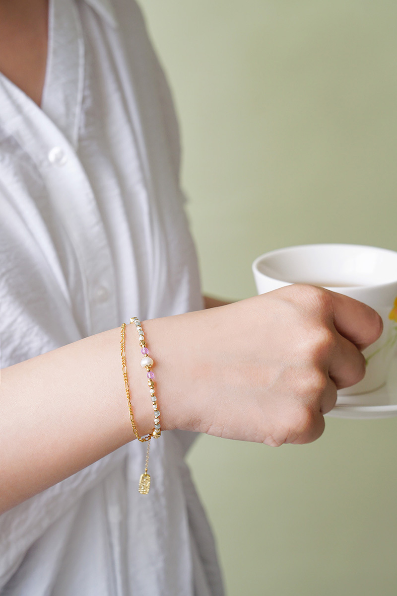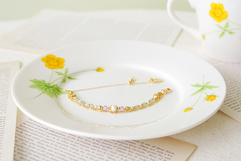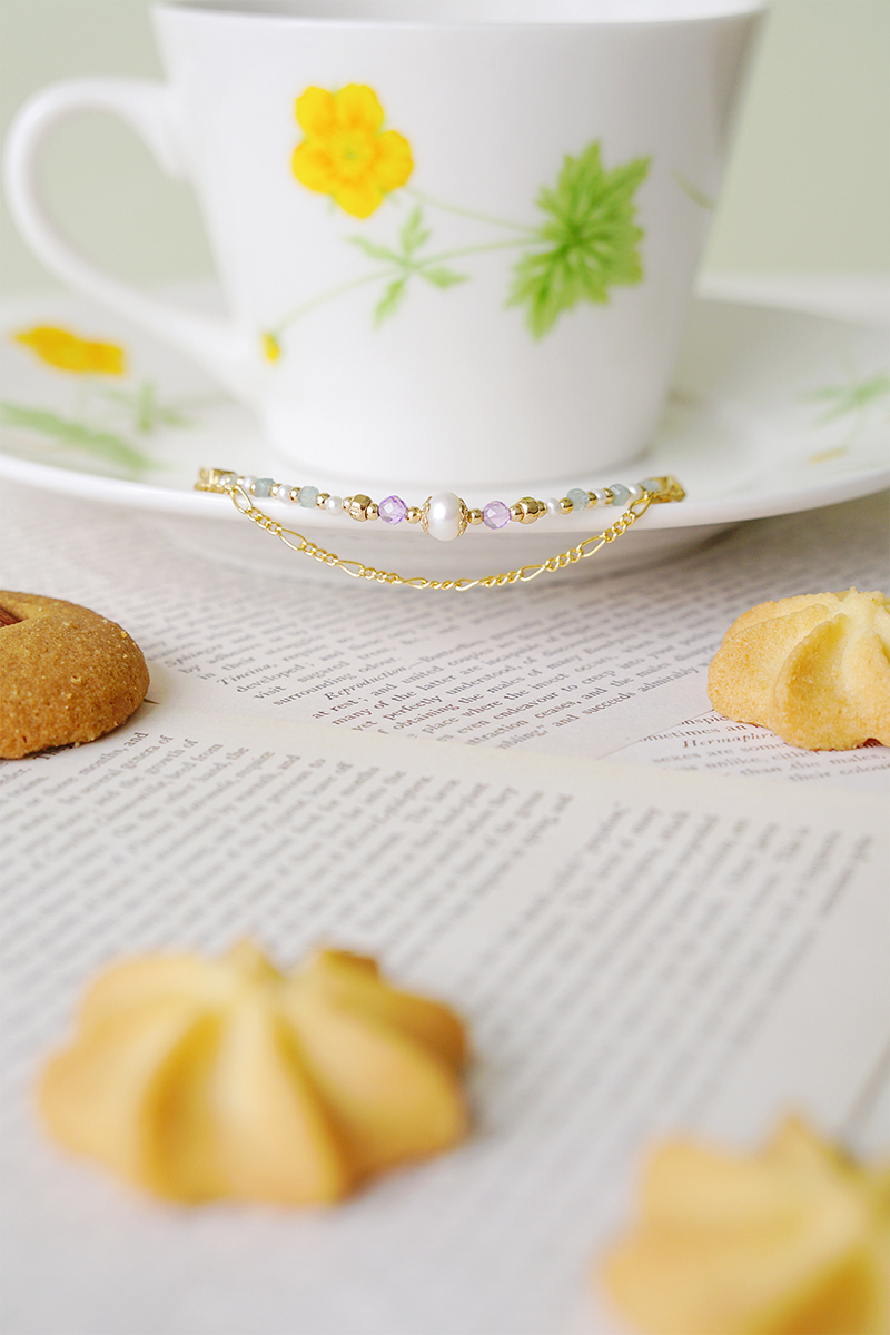 紫水晶、磷灰石、淡水珍珠、黃銅鍍18K金
