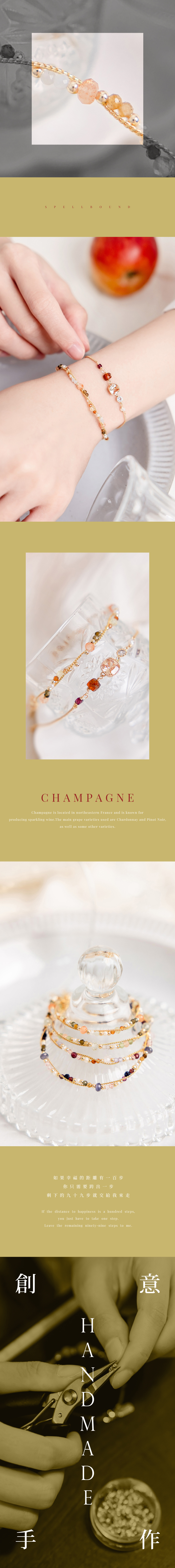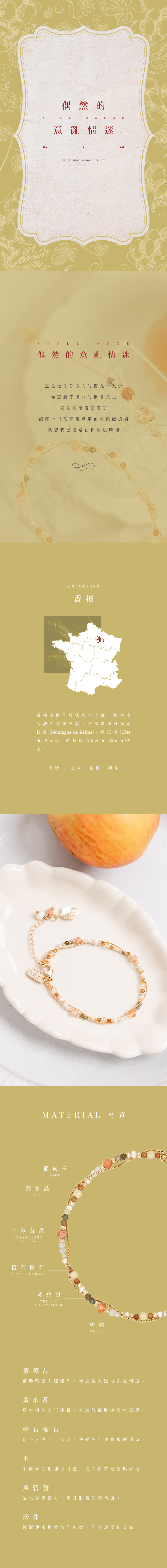 金草莓晶、黃水晶、橙石榴石、緬甸玉、黃碧璽、淡水珍珠、黃銅鍍18K金