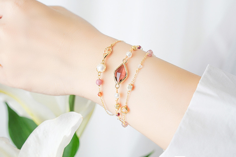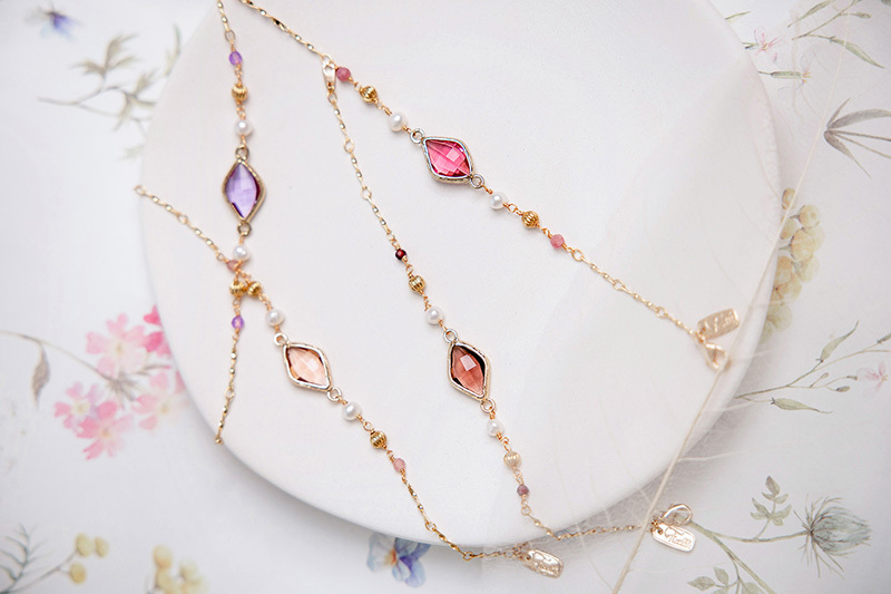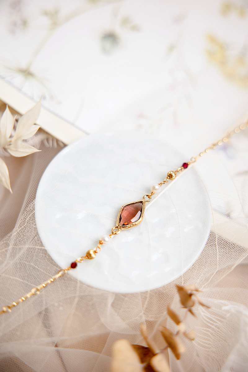 石榴石、淡水珍珠、鋯石、黃銅鍍18K金