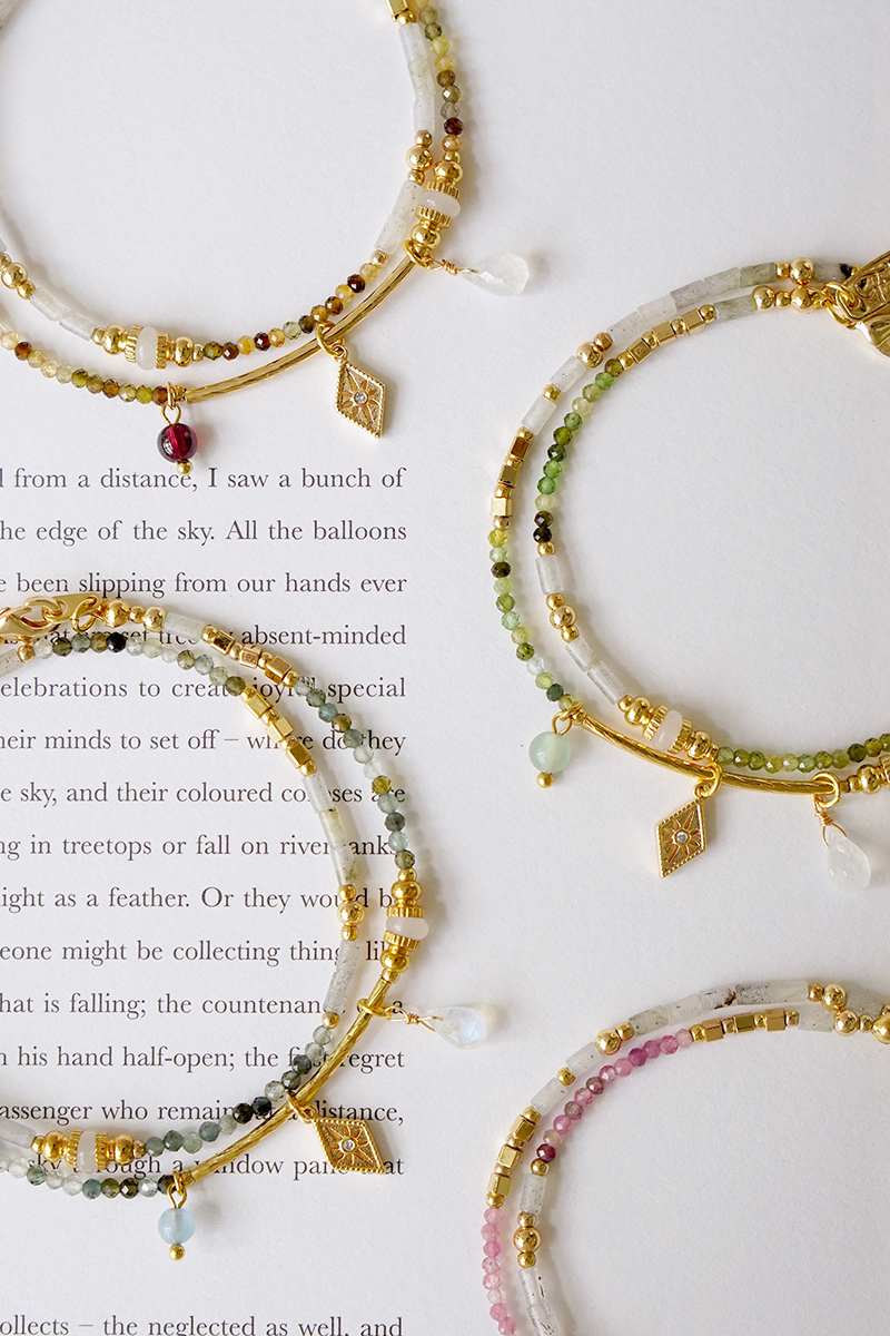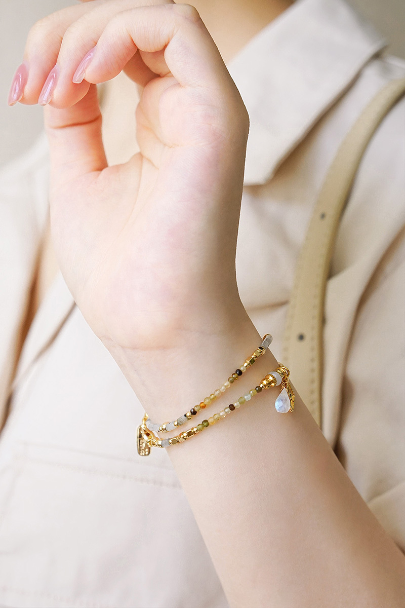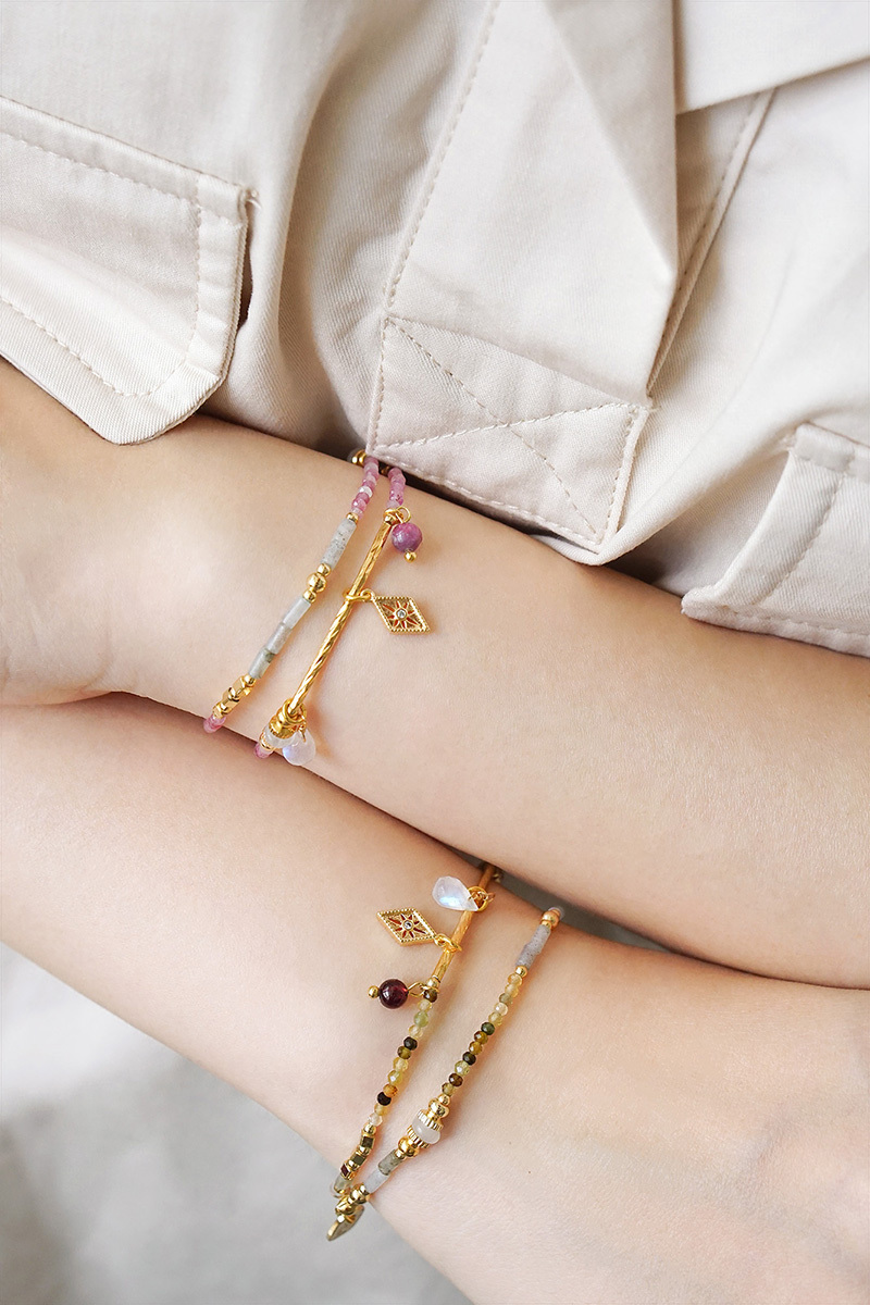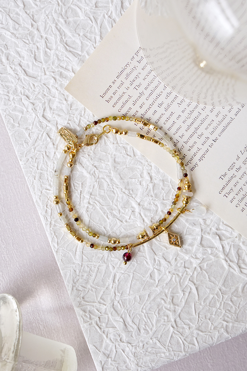 彩色碧璽、石榴石、月光石、拉長石、鋯石、黃銅鍍18K金