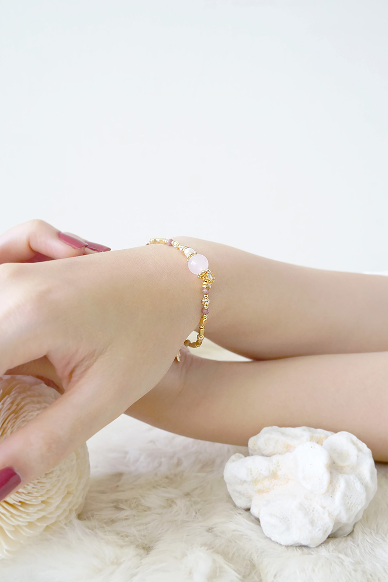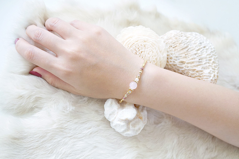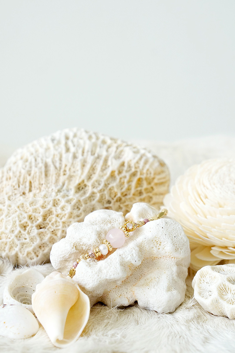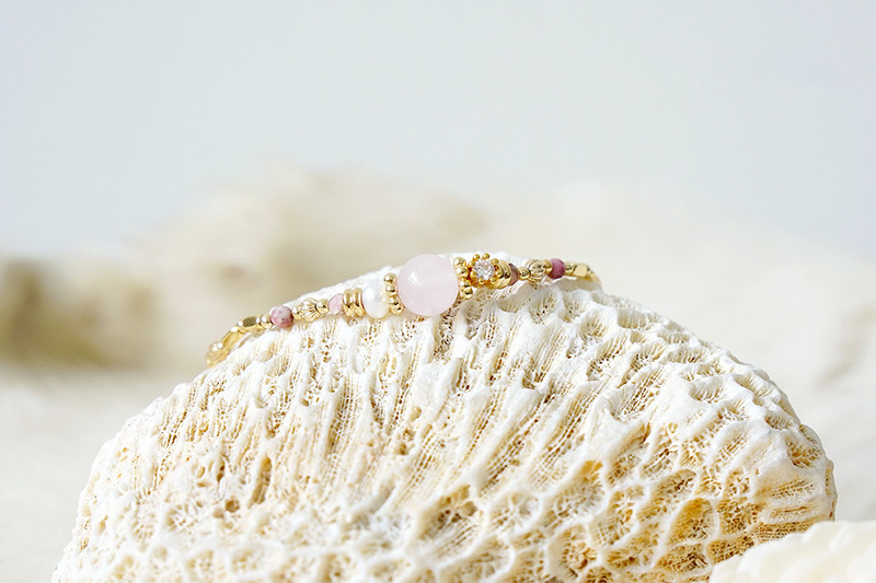 粉晶、紅紋石、淡水珍珠、鋯石爪鑽、黃銅鍍18K金