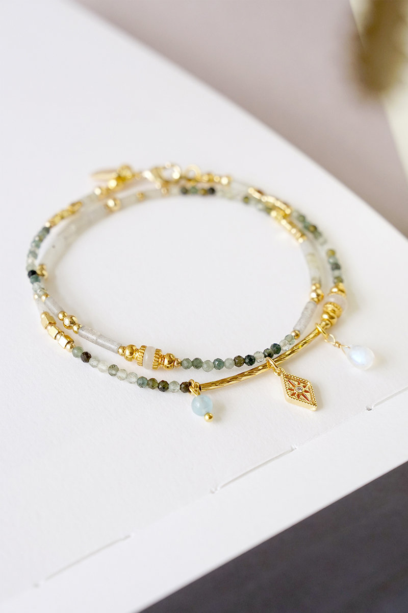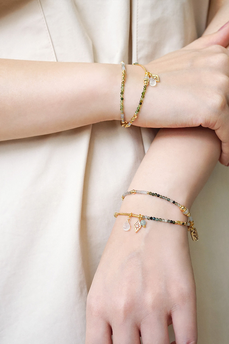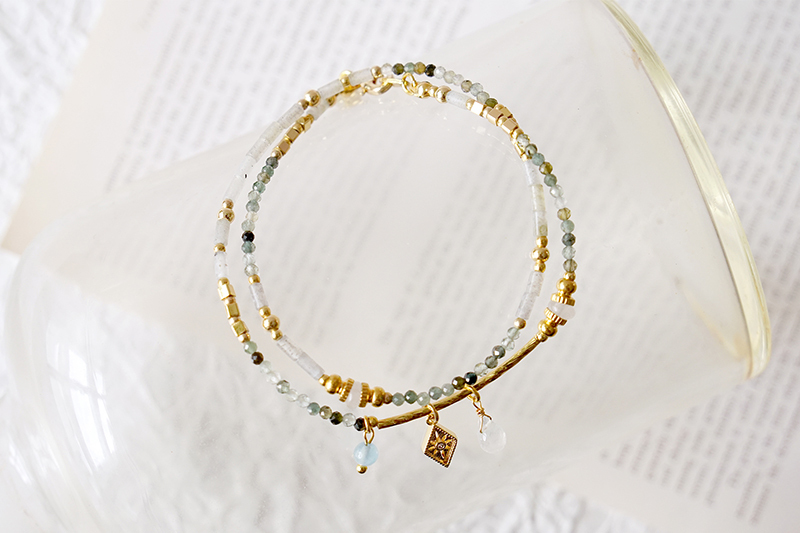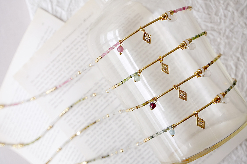 彩色碧璽、海藍寶、月光石、拉長石、鋯石、黃銅鍍18K金
