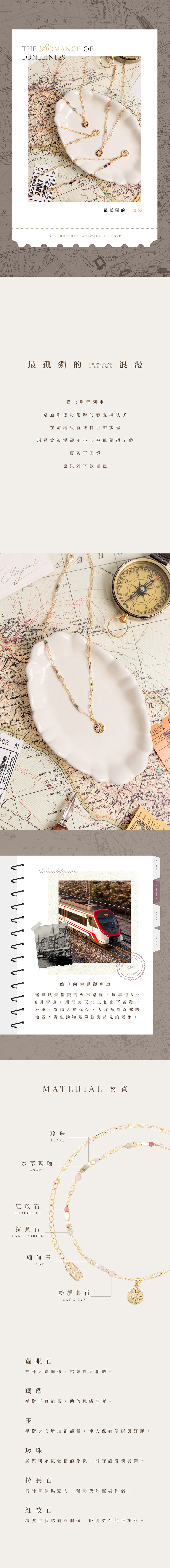 粉貓眼石、水草瑪瑙、月光石、淡水珍珠、拉長石、紅紋石、芒星鋯石、黃銅鍍18K金