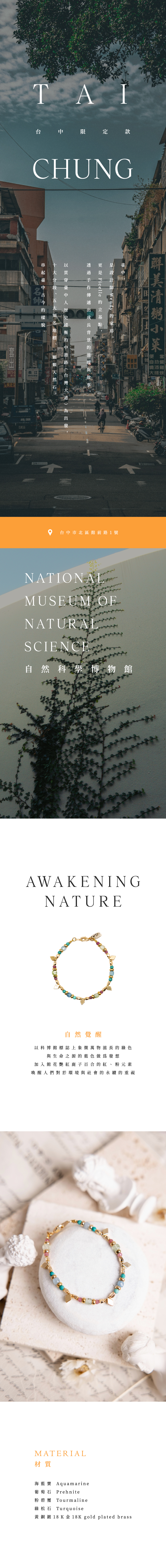 台中,是設計師Wendy的家鄉,本系列以貫穿台中人歷史縱橫的中港路(台灣大道)為出發,十大分段、五大知名地標、一顆顆天然石,串起台中古今的樣貌。