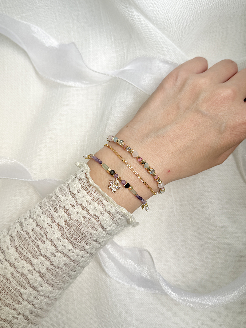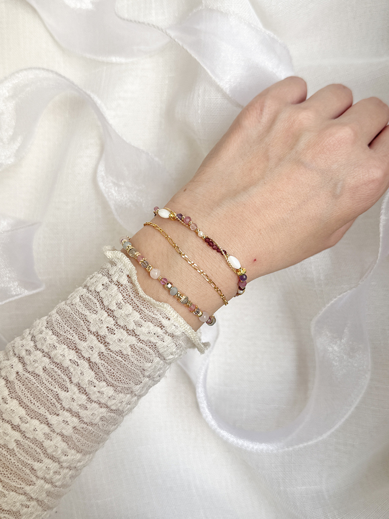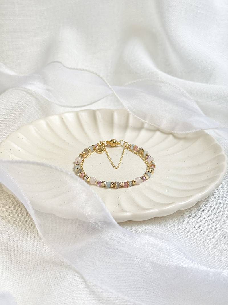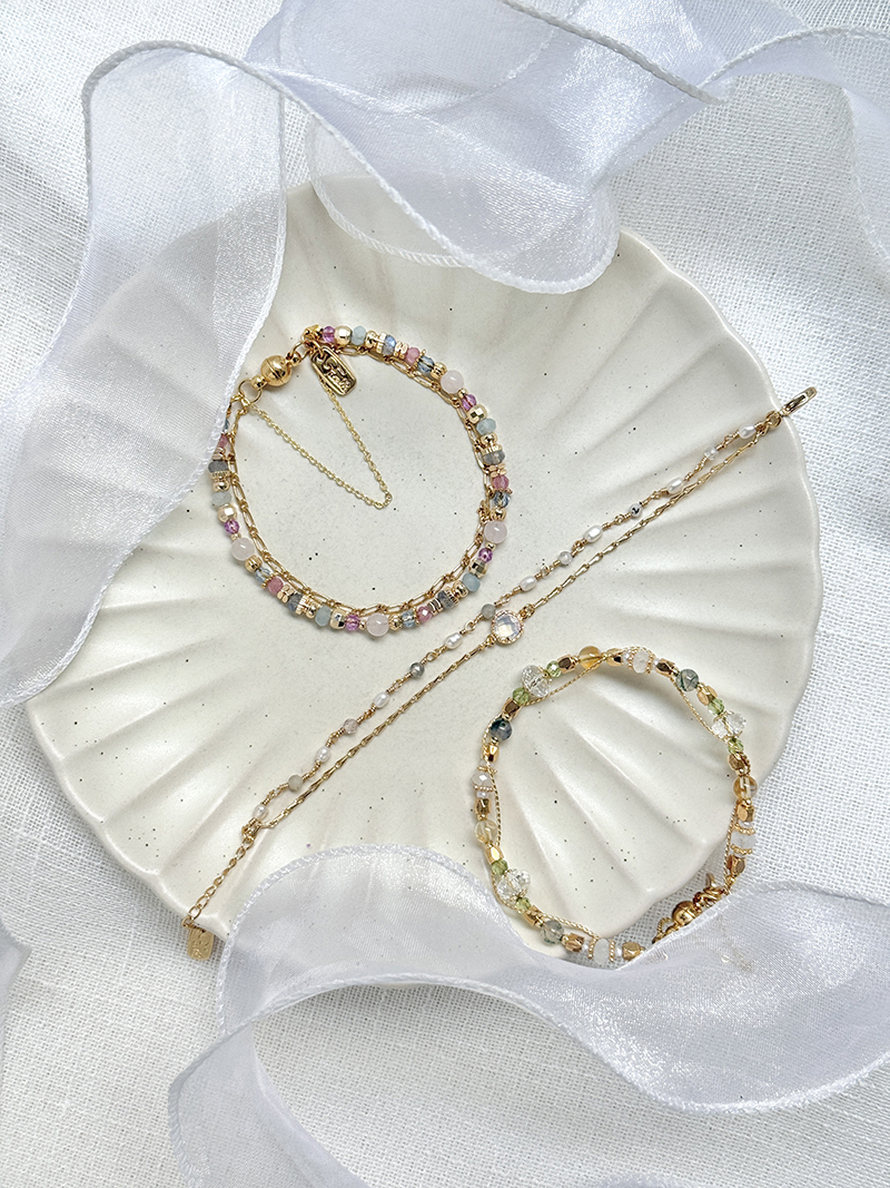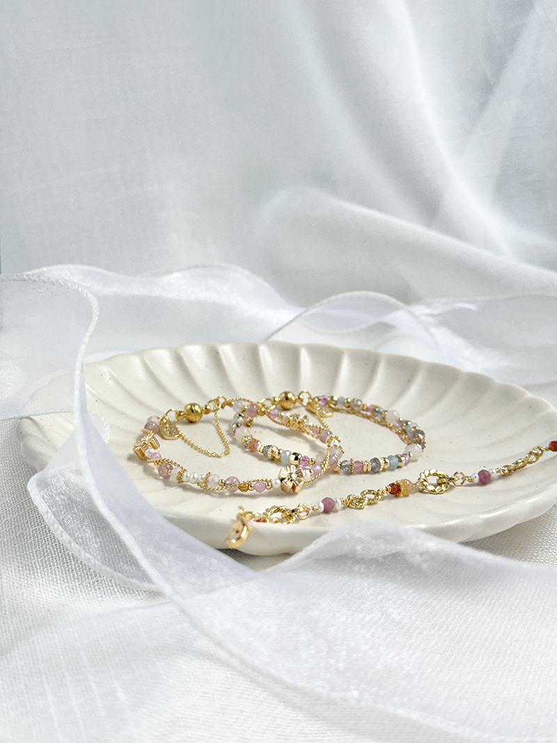 粉晶、海藍寶、紫水晶、托帕石、黃銅鍍18K金