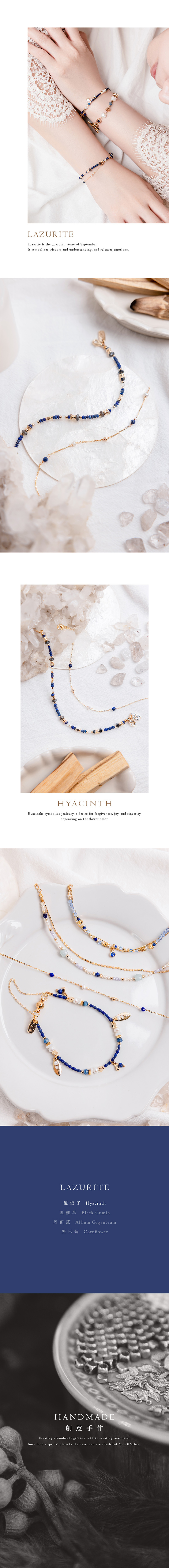 青金石、淡水珍珠、黃銅鍍18K金
