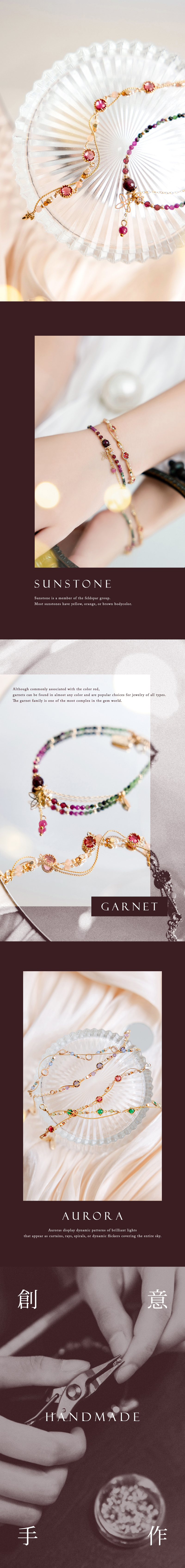 太陽石、橙石榴石、淡水珍珠、水晶琉璃、黃銅鍍18K金