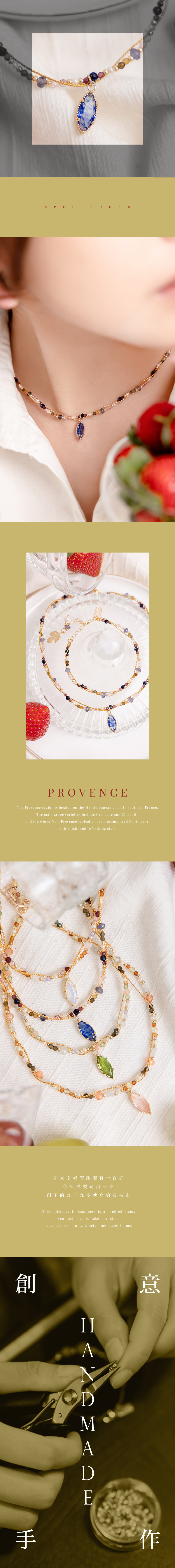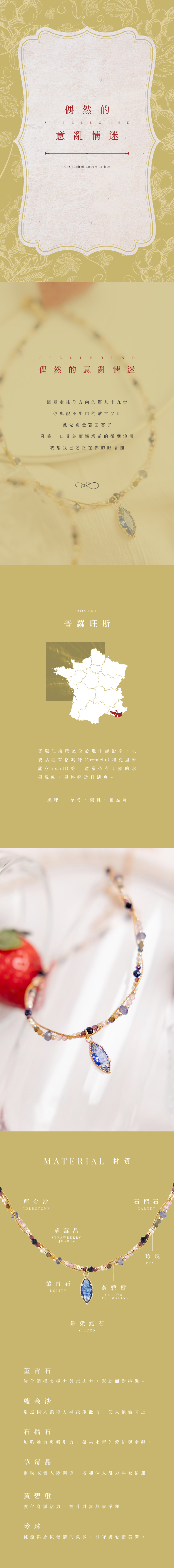 堇青石、暈染藍鋯石、藍金沙、石榴石、草莓晶、黃碧璽、淡水珍珠、黃銅鍍18K金