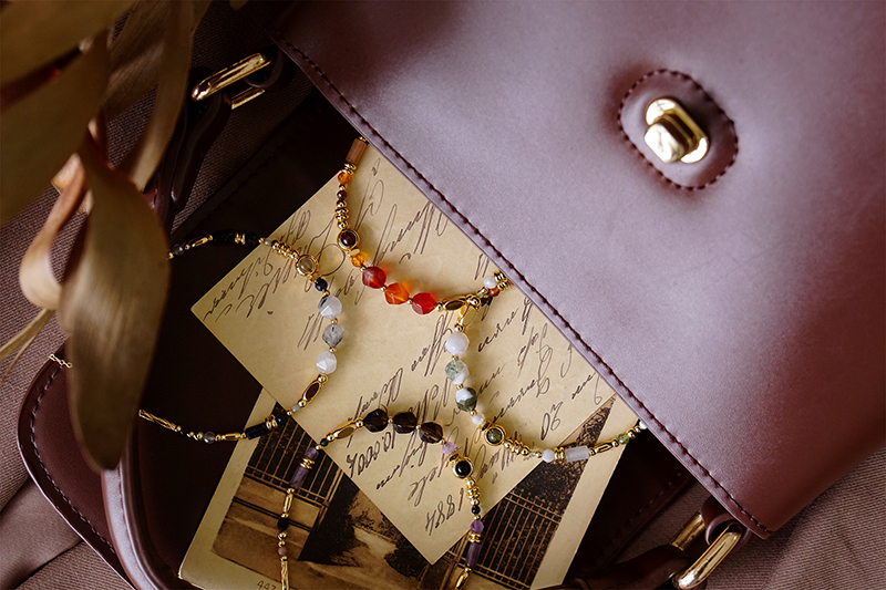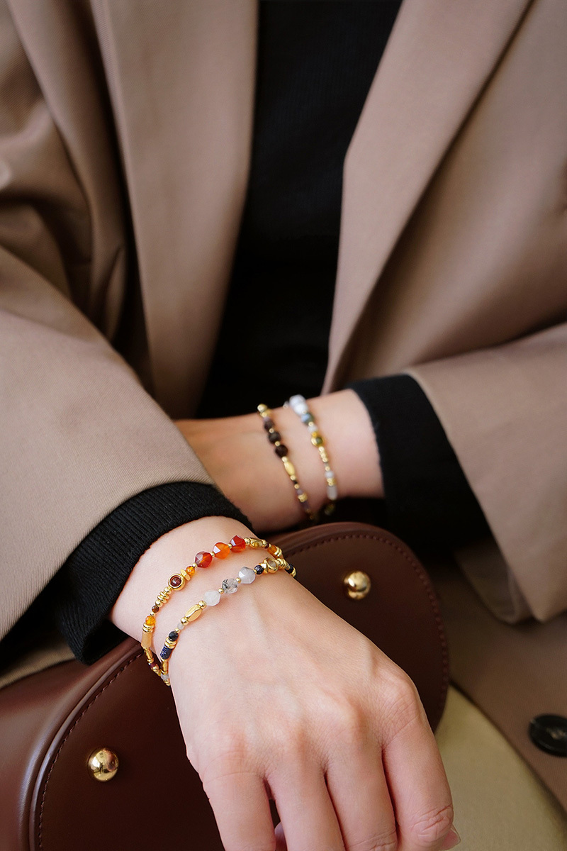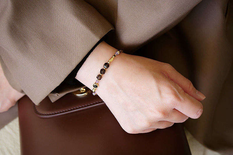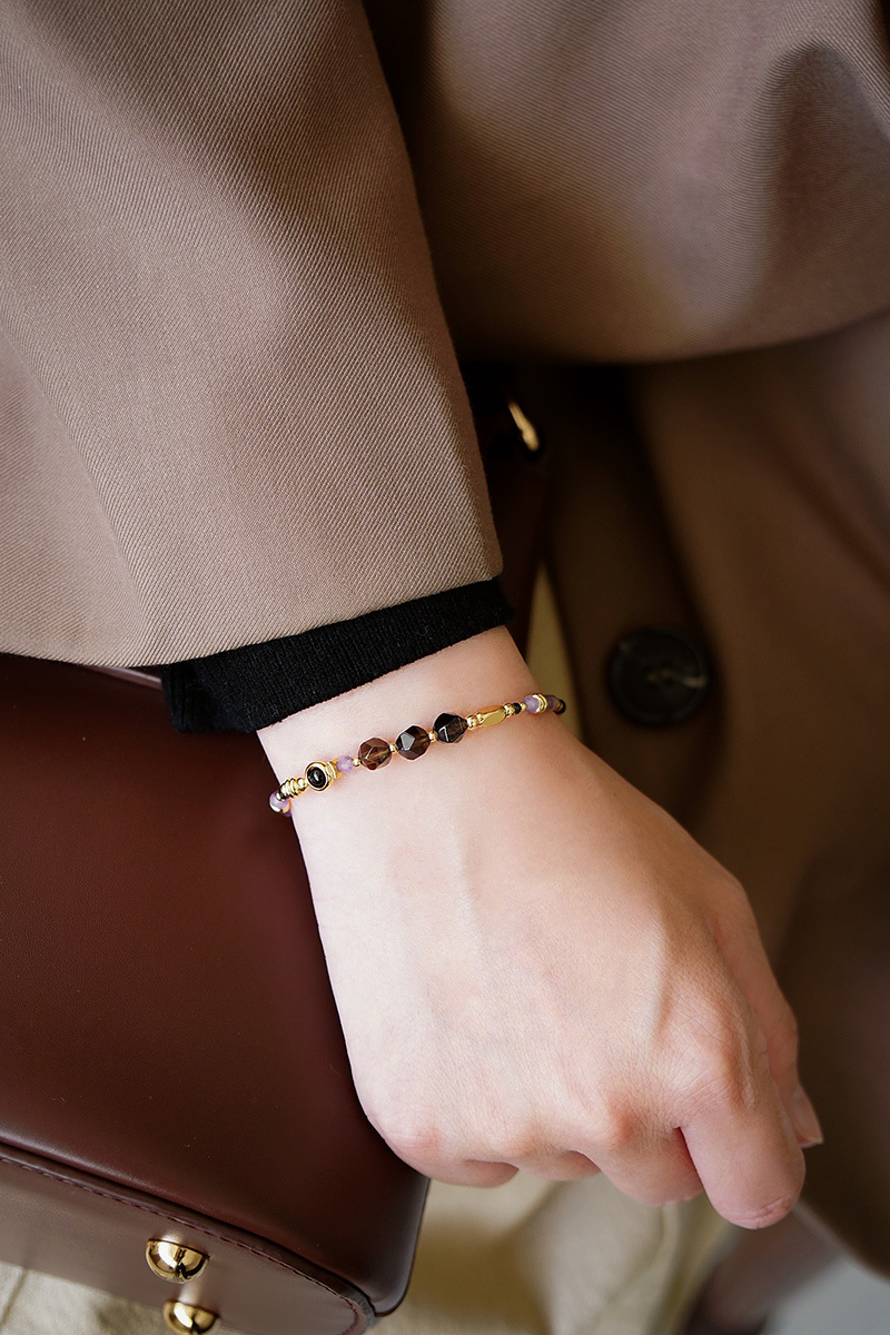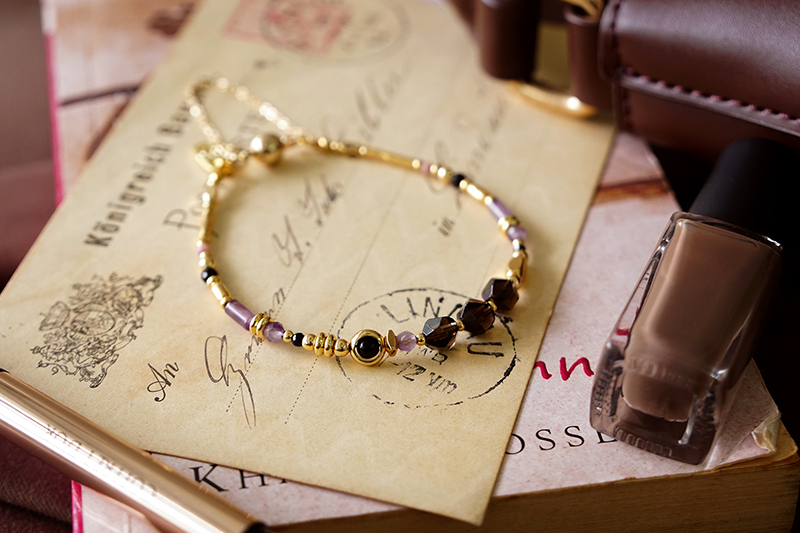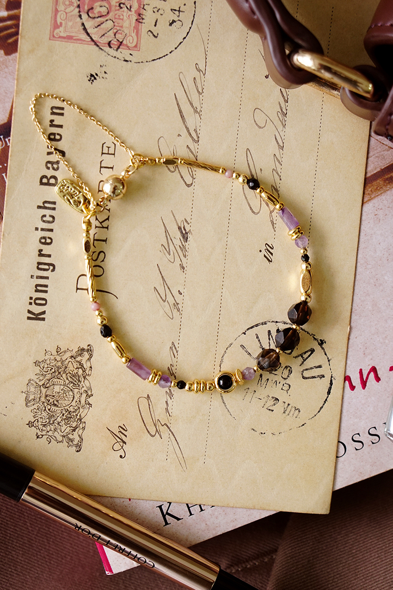 茶晶、黑瑪瑙、紫水晶、尖晶石、紅紋石、黃銅鍍18K金