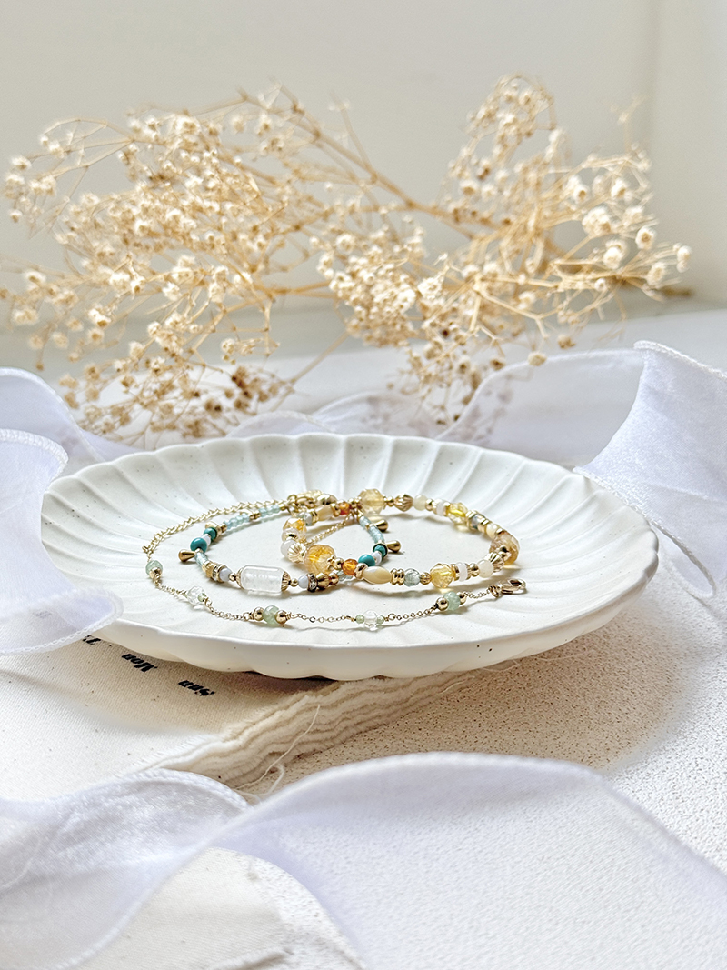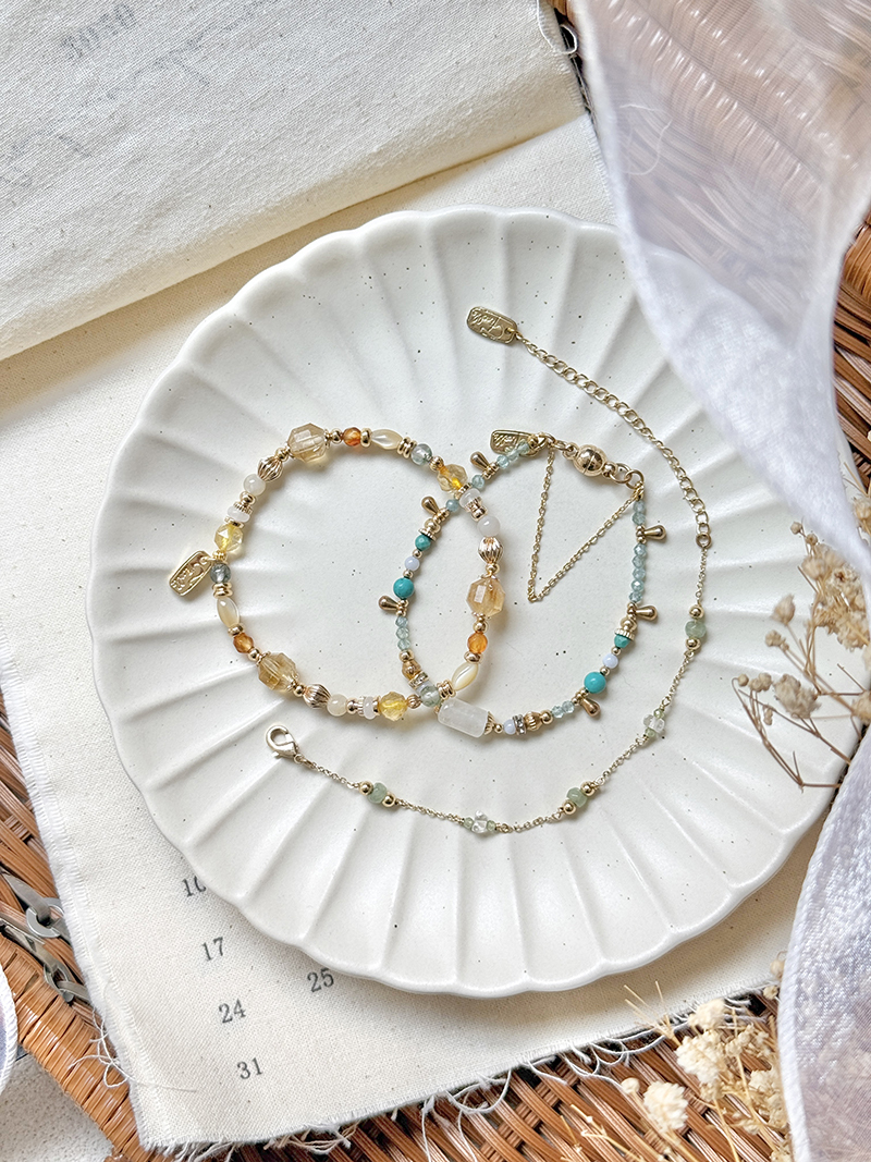 東陵玉、白水晶、橄欖石、黃銅鍍18K金