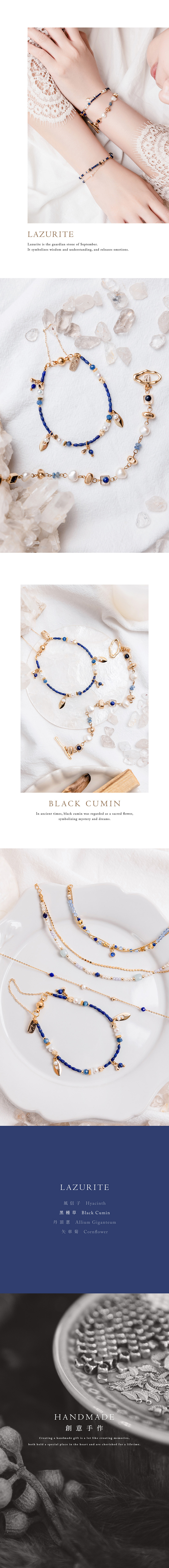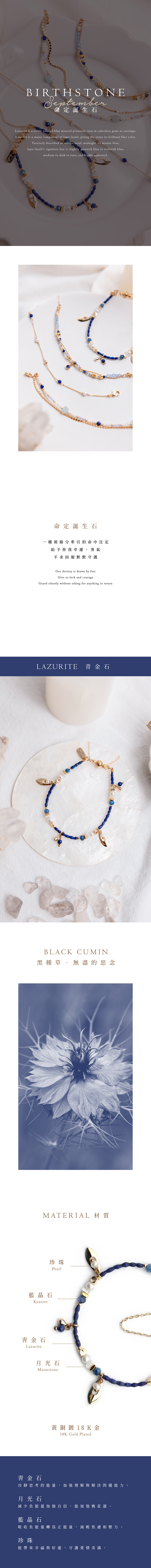 青金石、月光石、藍晶石、淡水珍珠、黃銅鍍18K金