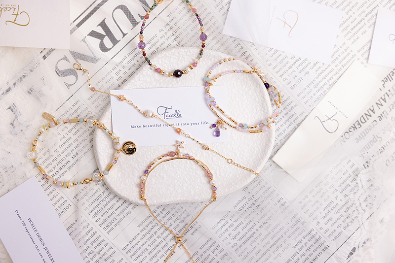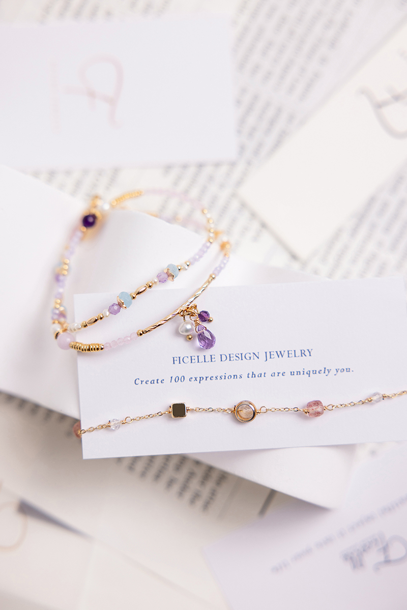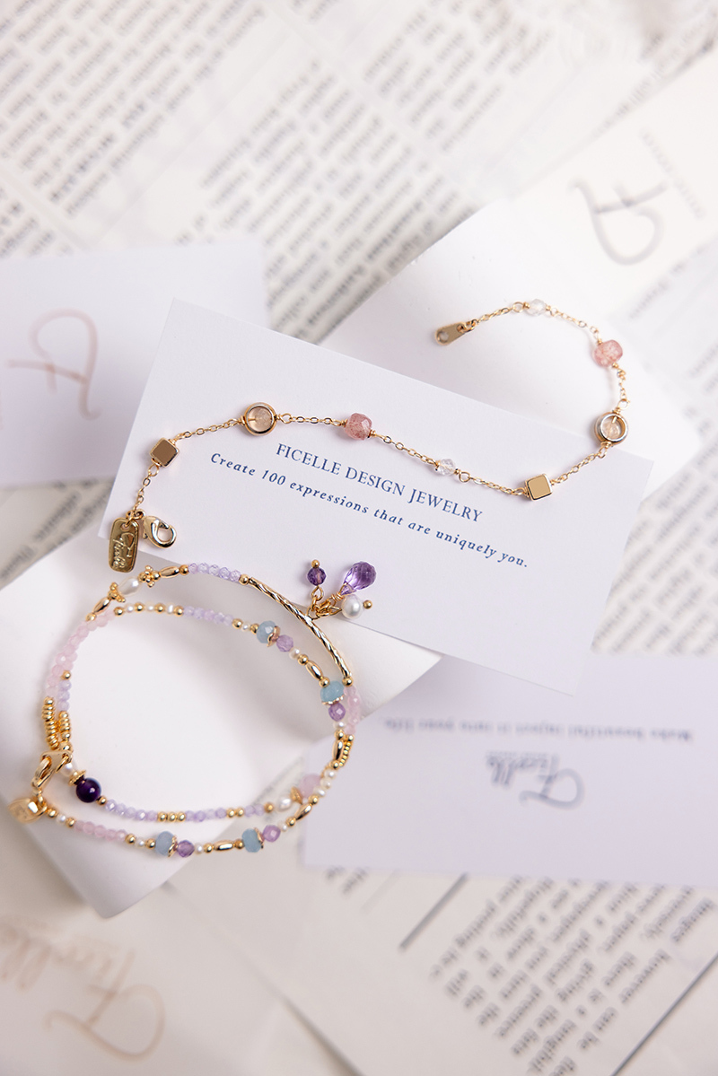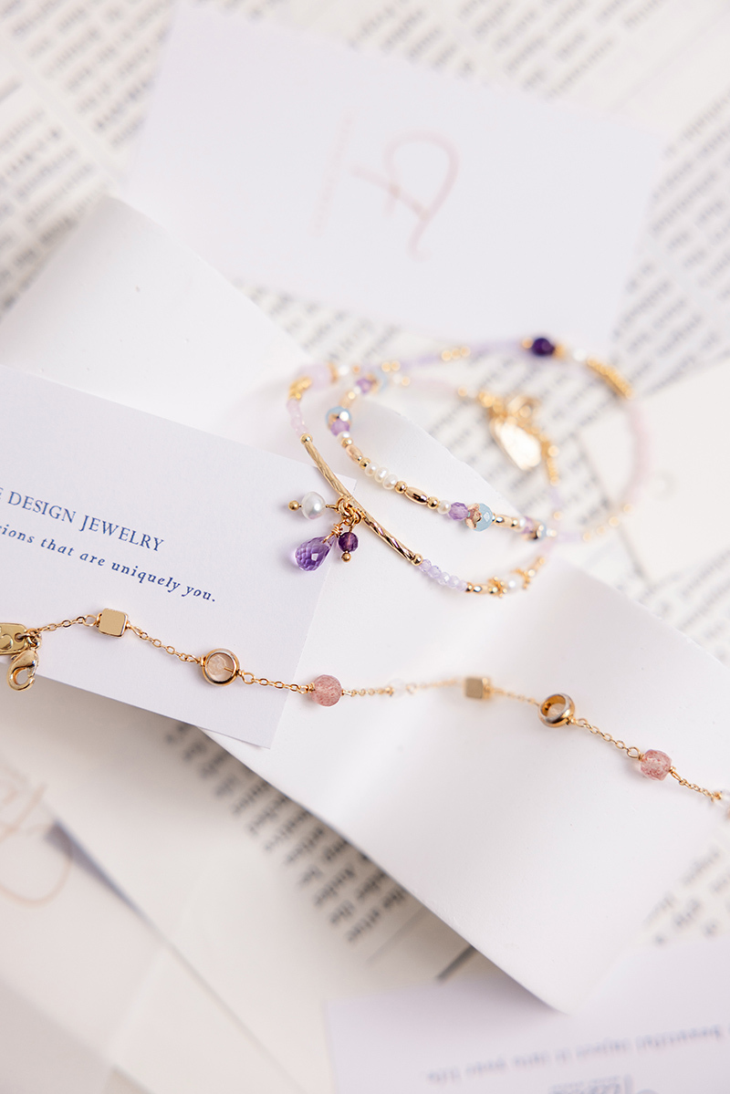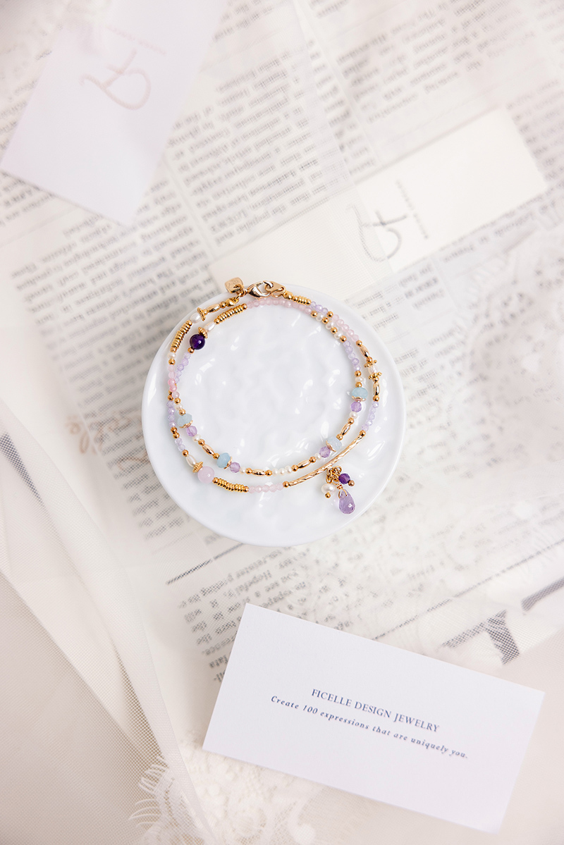 紫水晶、淡水珍珠、粉貓眼石、藍玉髓、紫鋯石、黃銅鍍18K金