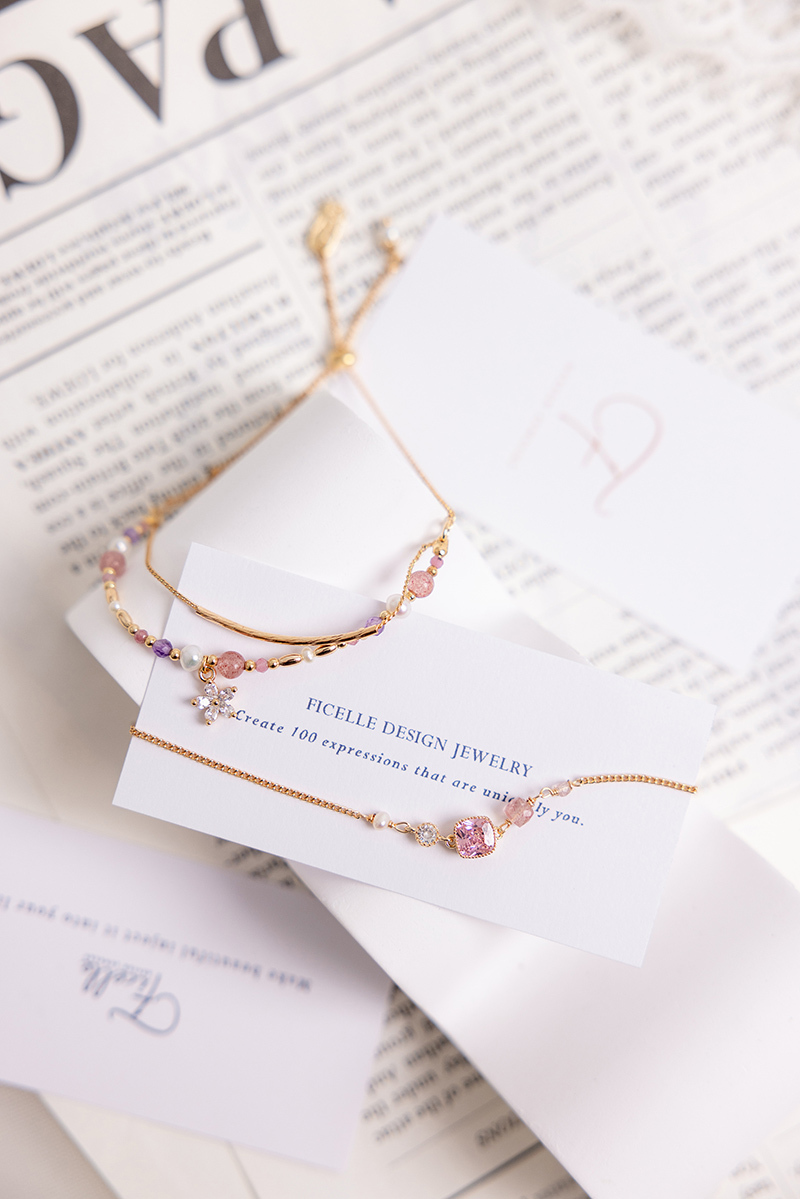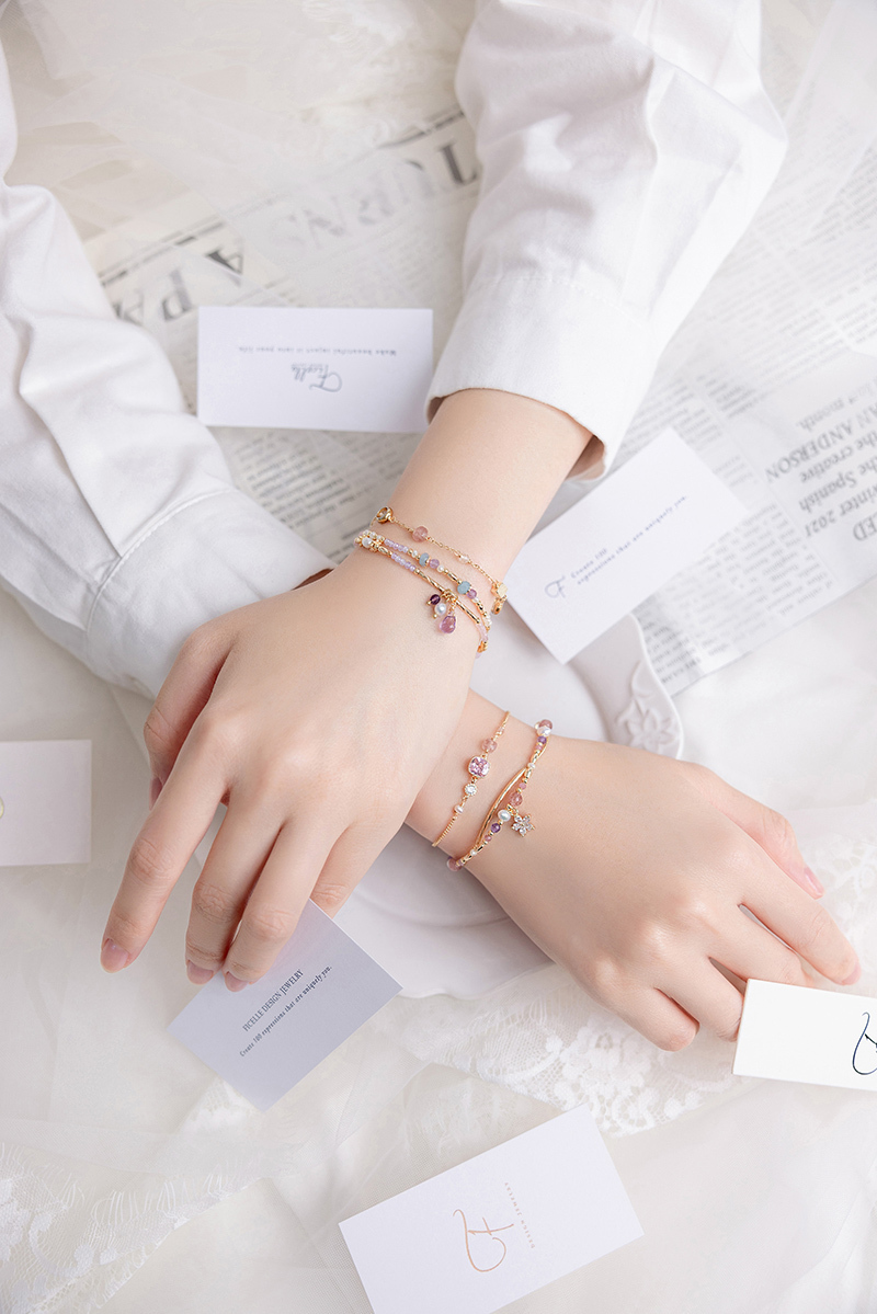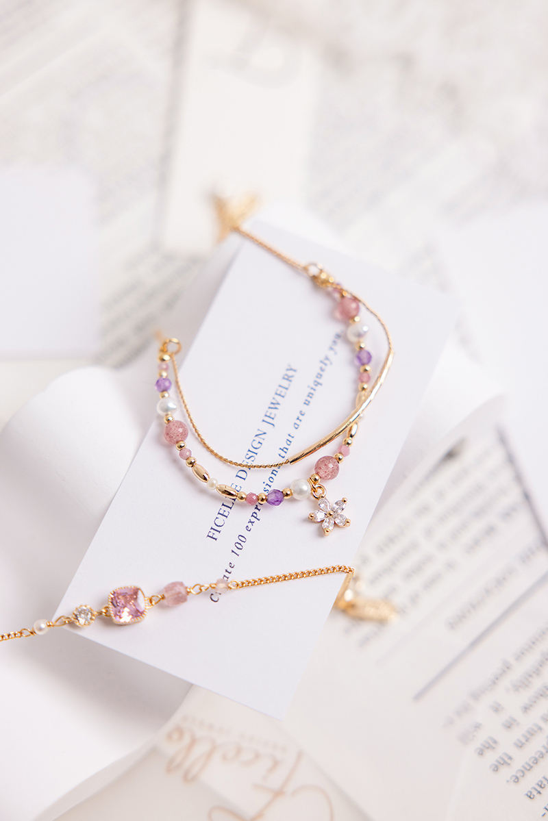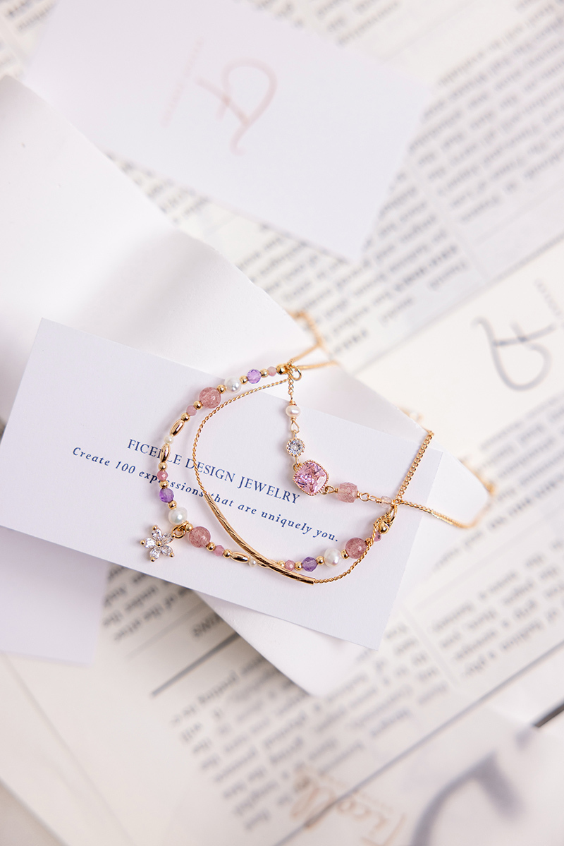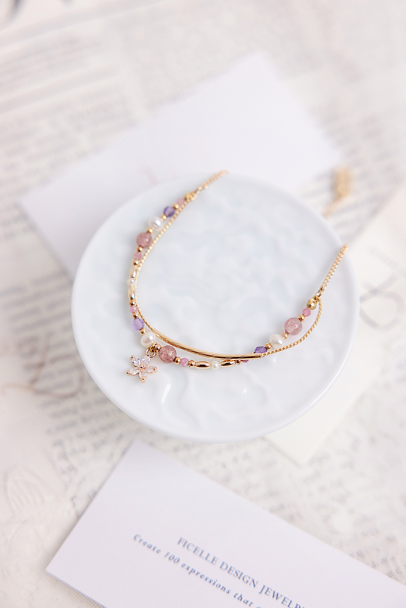 草莓晶、粉碧璽、紫水晶、淡水珍珠、黃銅鍍18K金