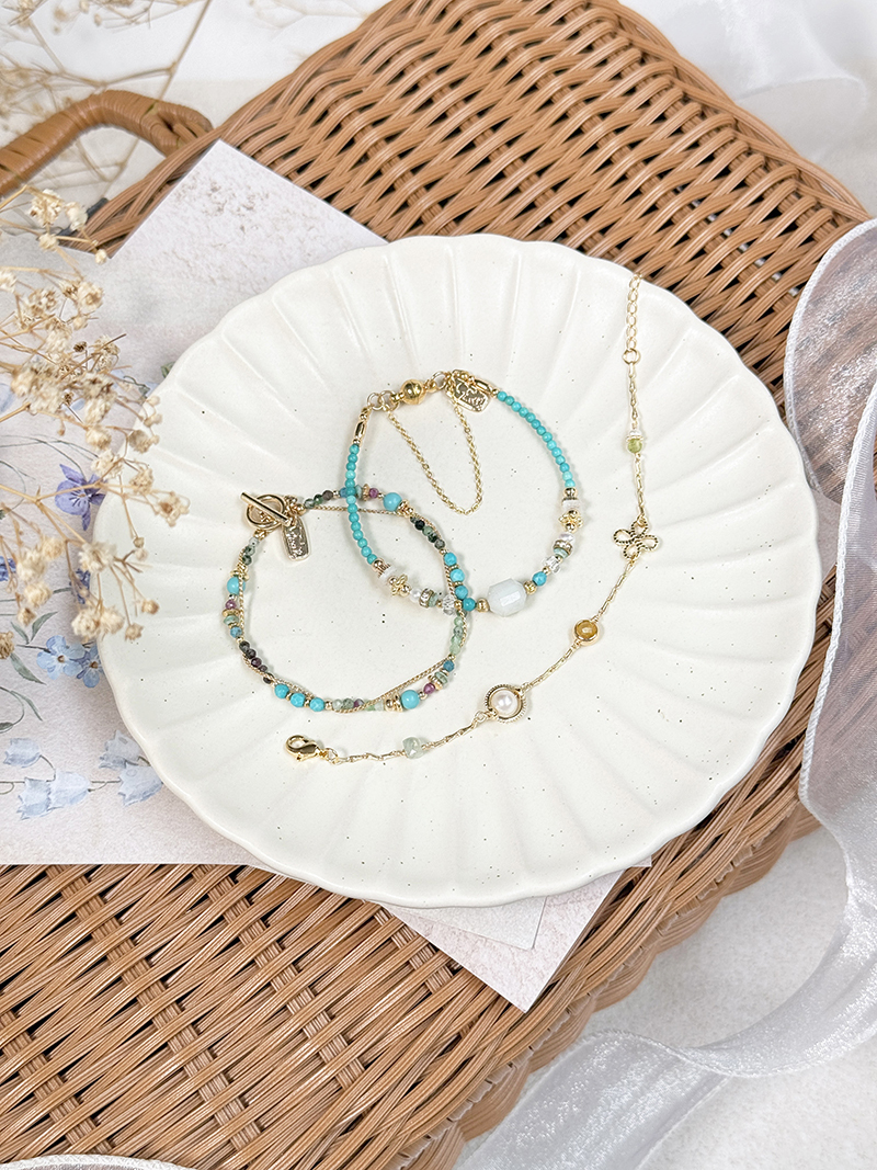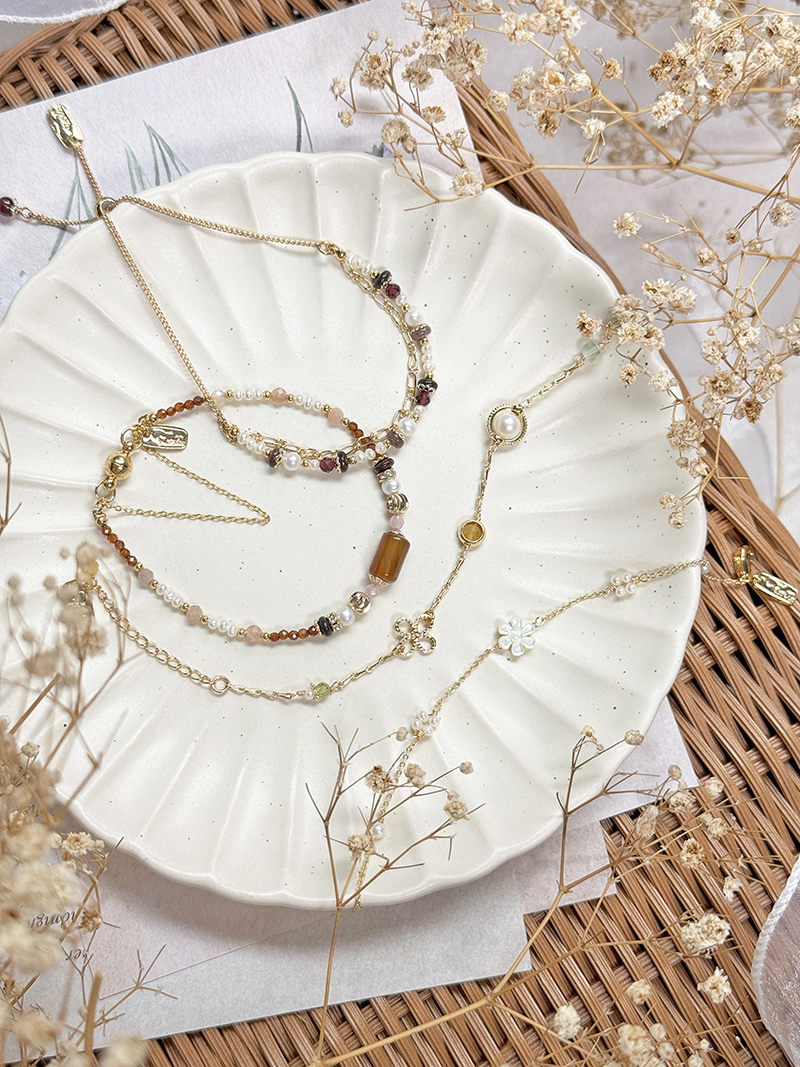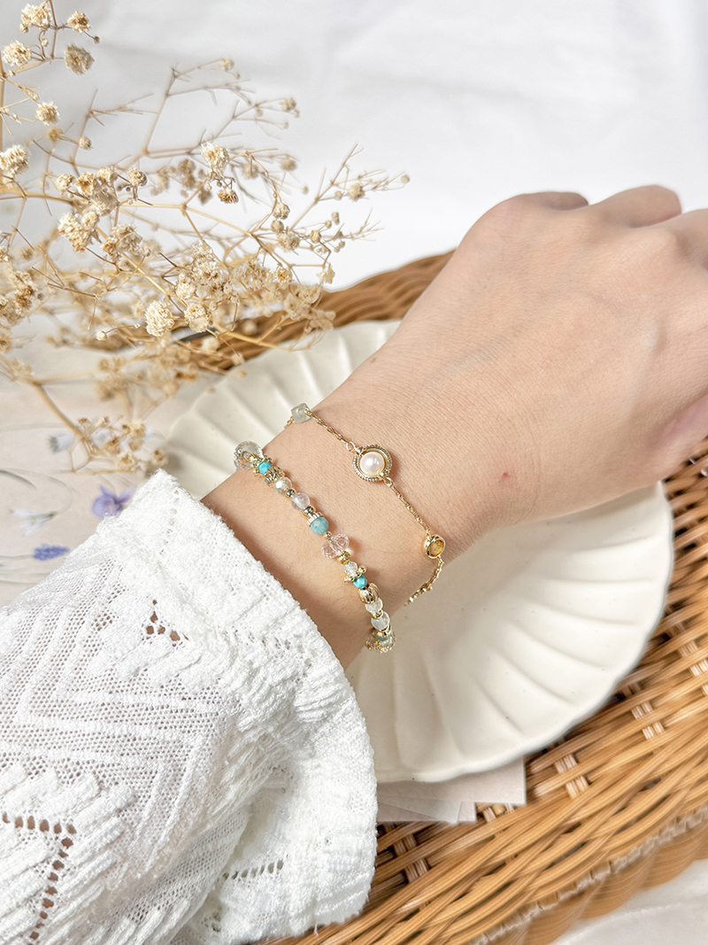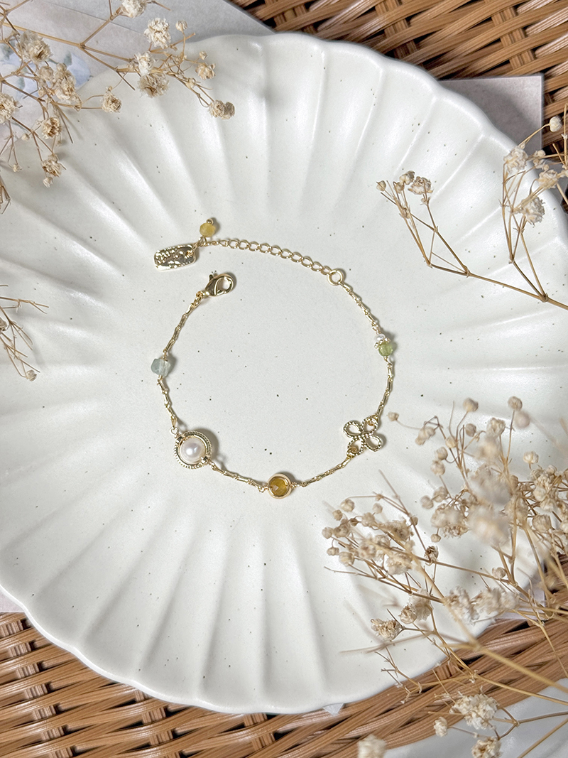 淡水珍珠、葡萄石、黃蛋白石、橄欖石、黃銅鍍18K金