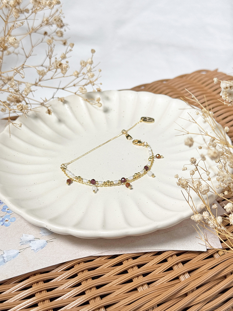 石榴石、橙石榴石、淡水珍珠、黃銅鍍18K金