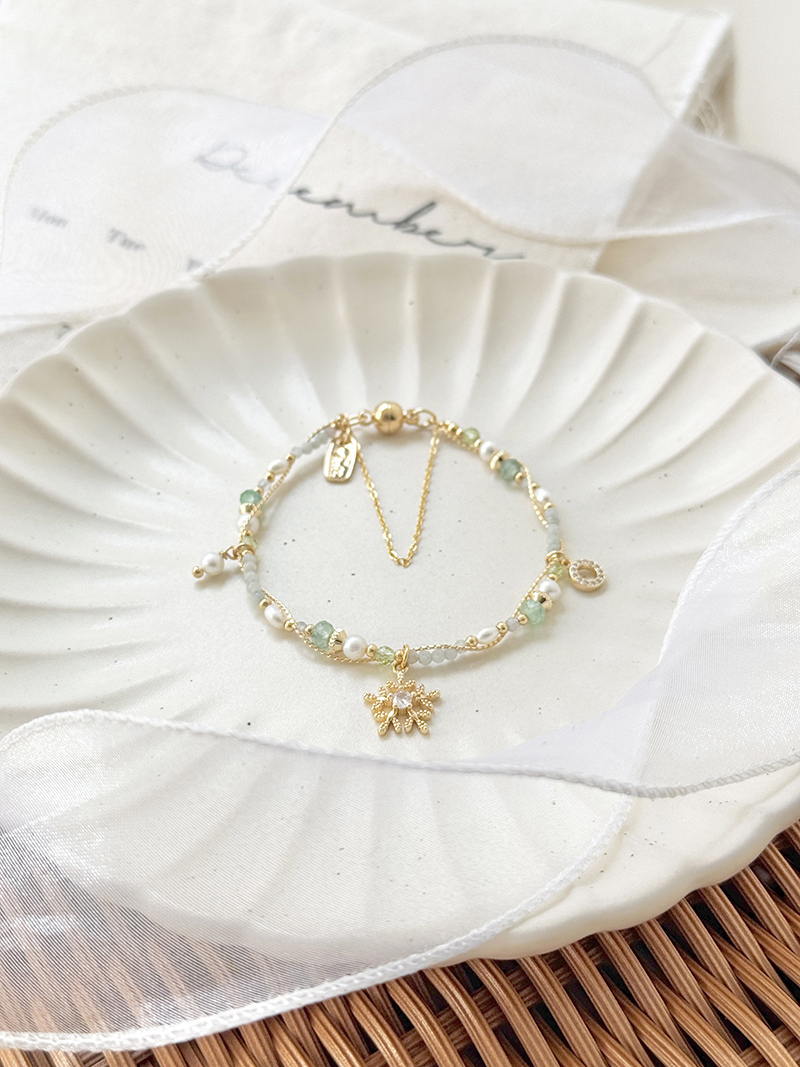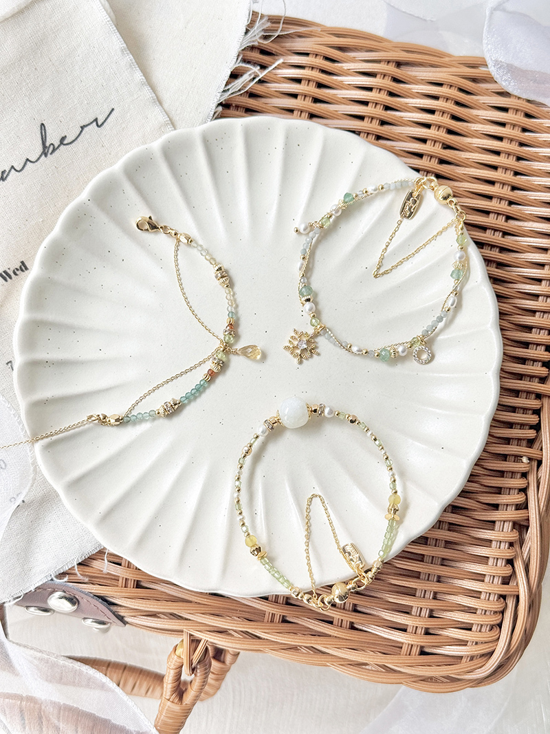 東陵玉、淡水珍珠、橄欖石、緬甸玉、拉長石、鋯石、黃銅鍍18K金