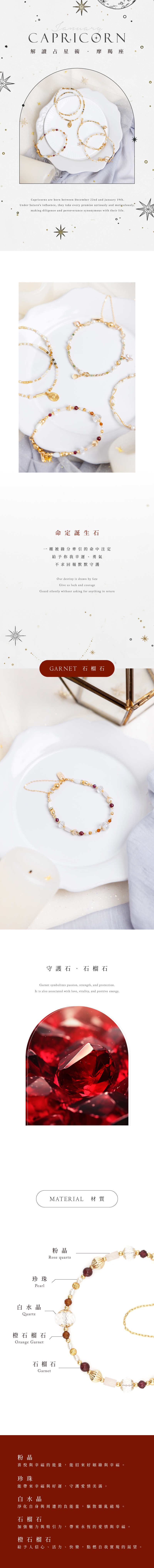 白水晶、石榴石、橙石榴石、粉晶、白蝶貝、黃銅鍍18K金