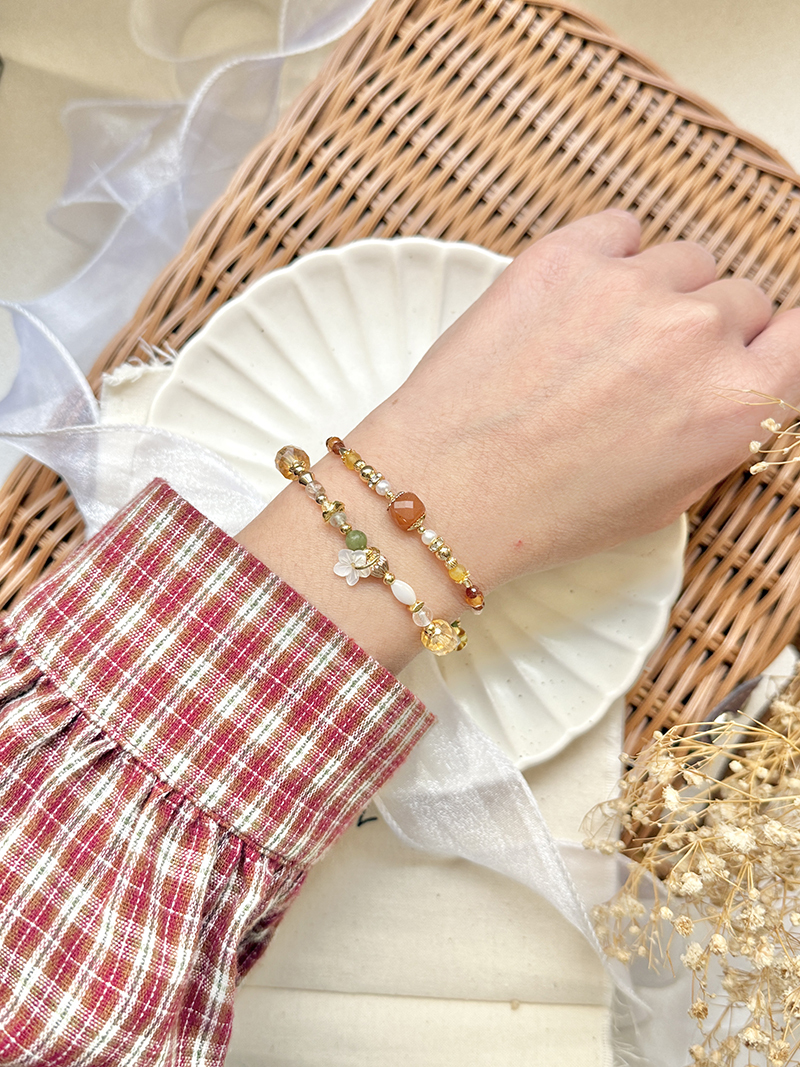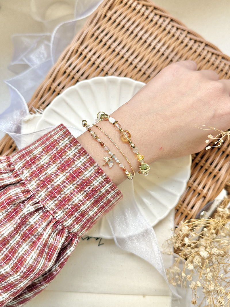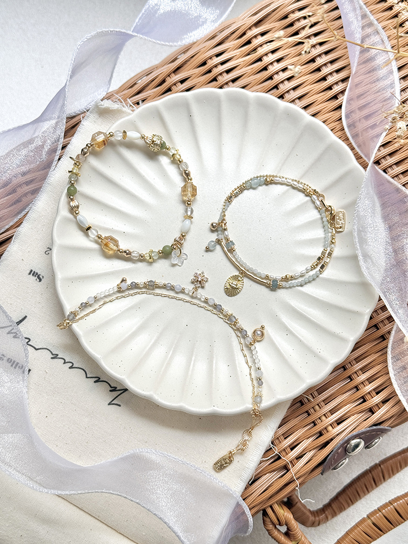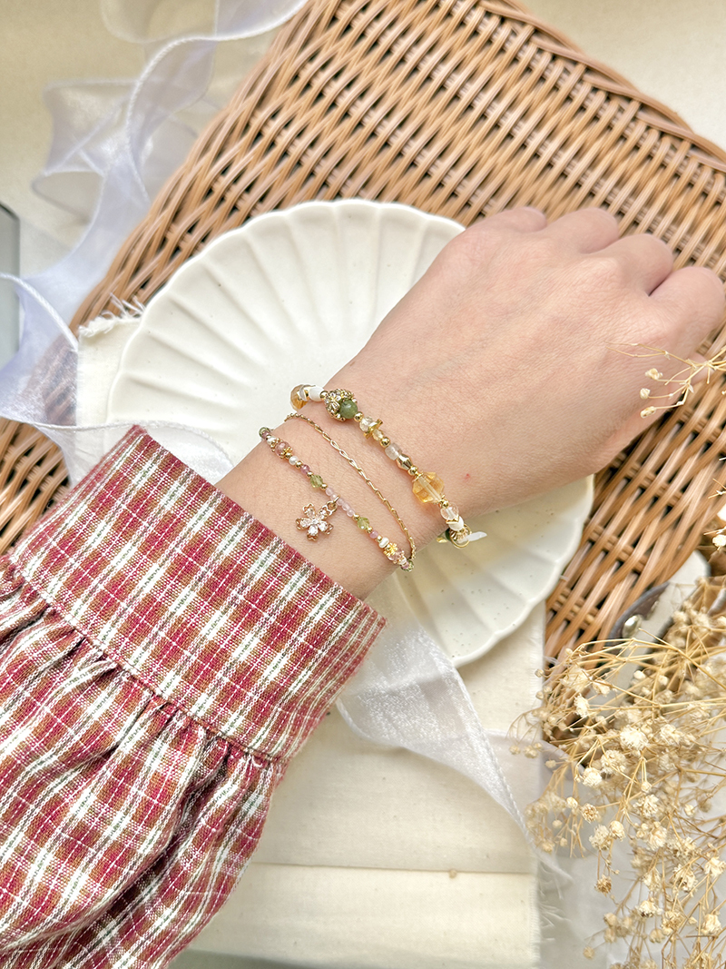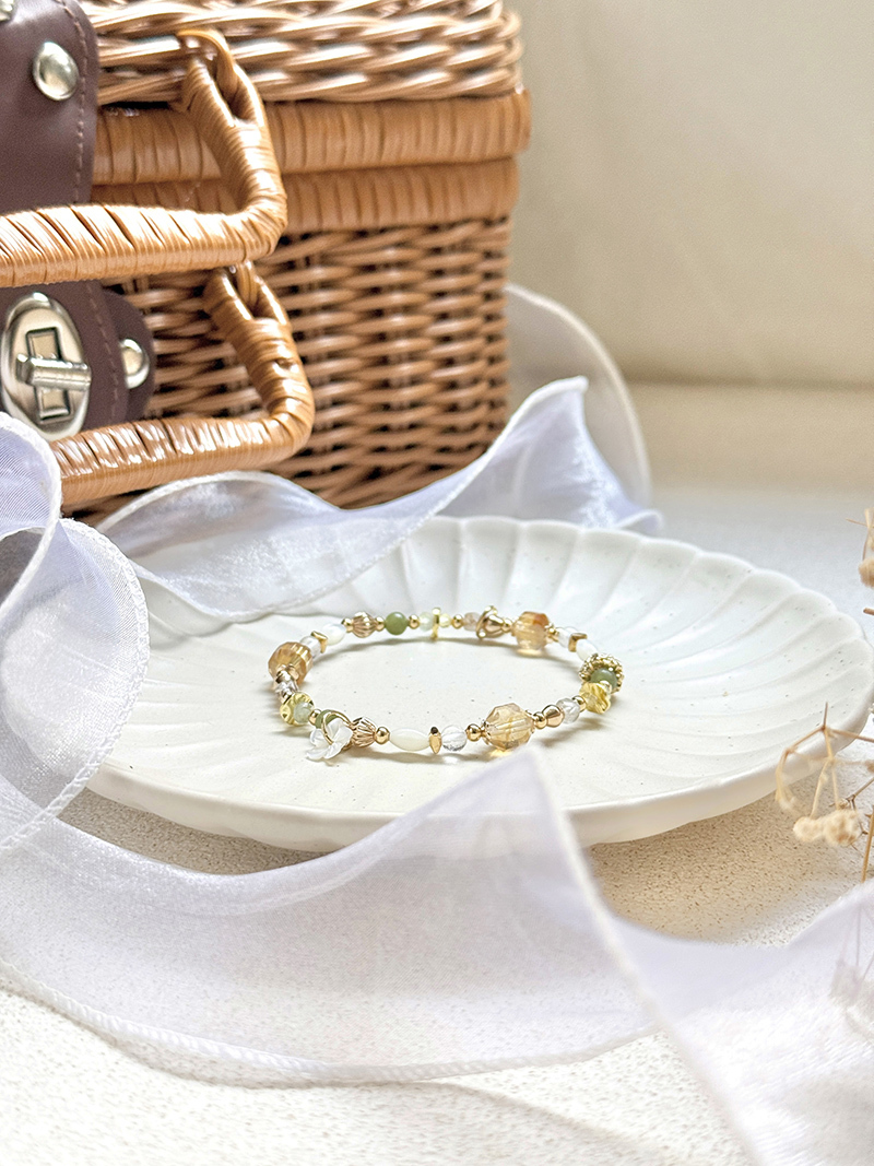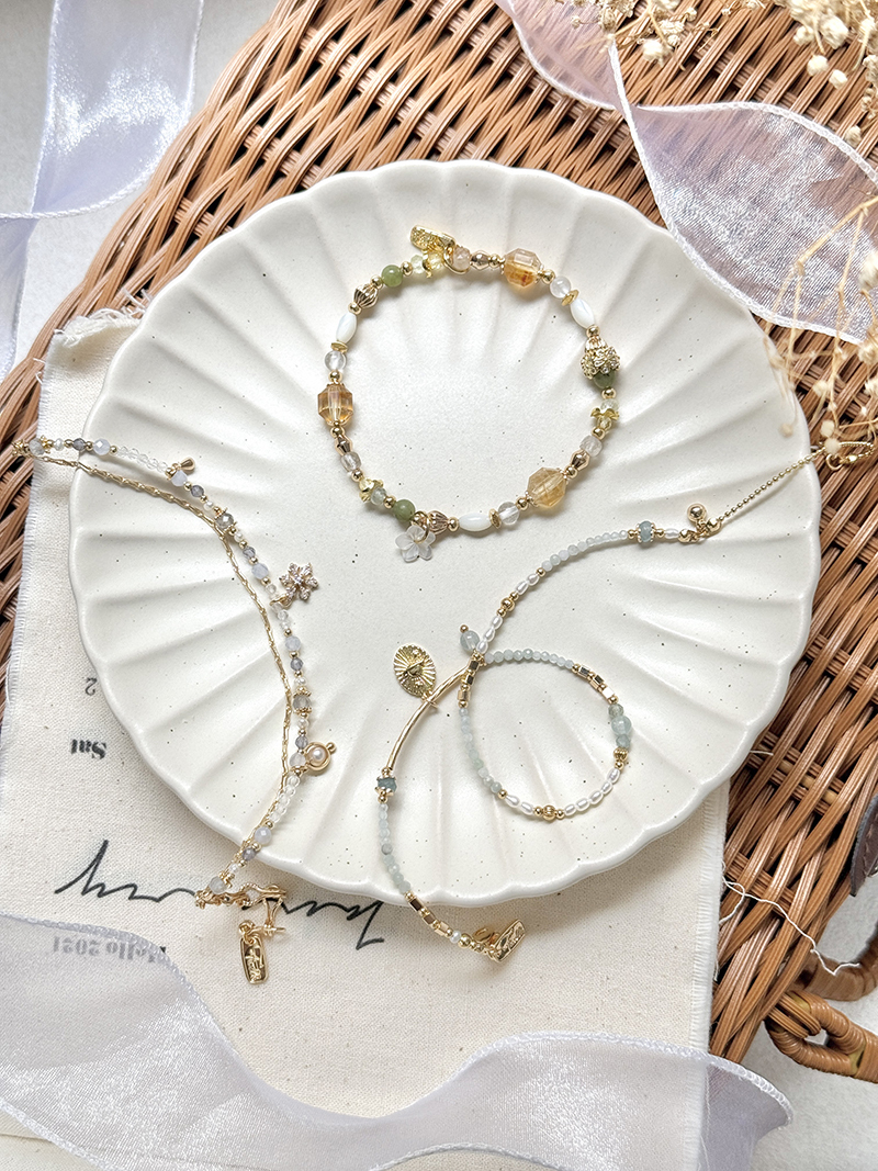 橄欖玉、黃水晶、葡萄石、白蝶貝、鋯石、黃銅鍍18K金