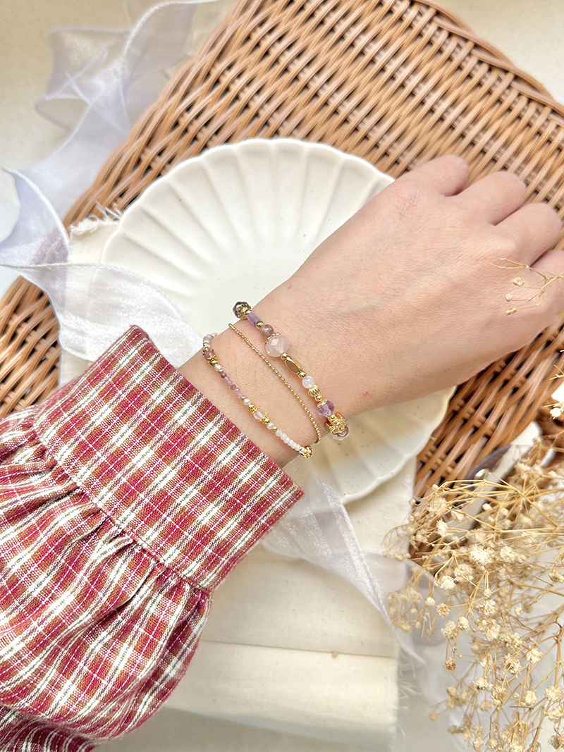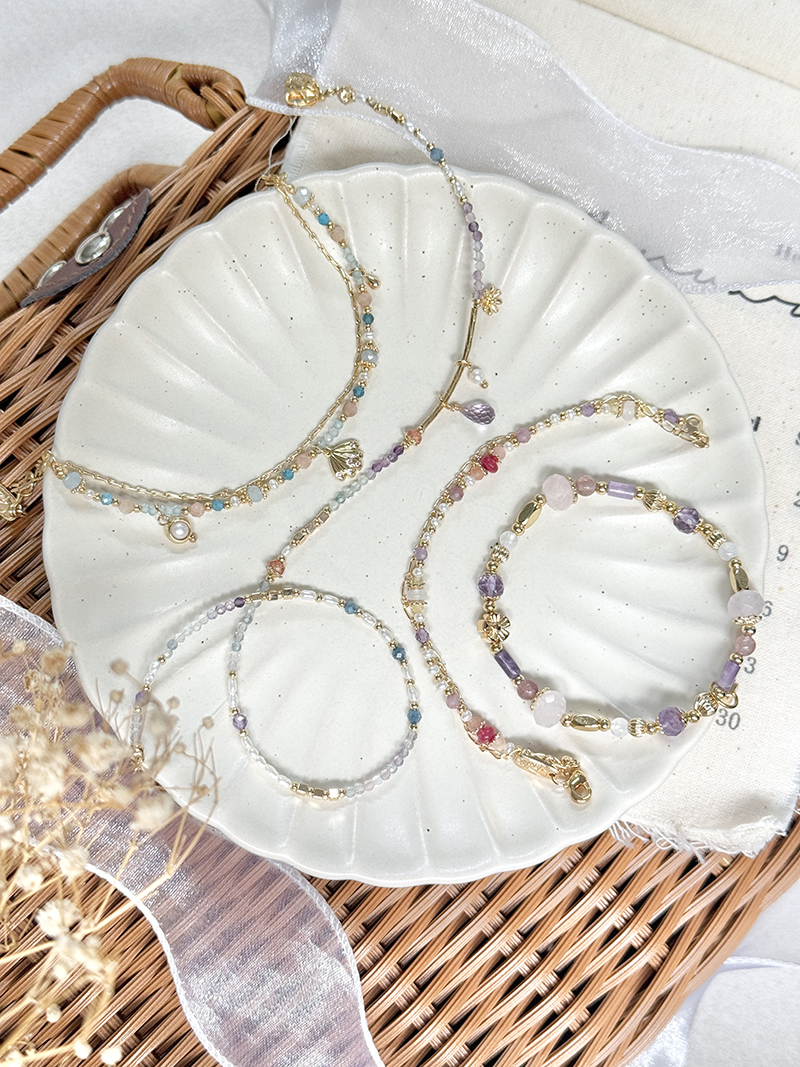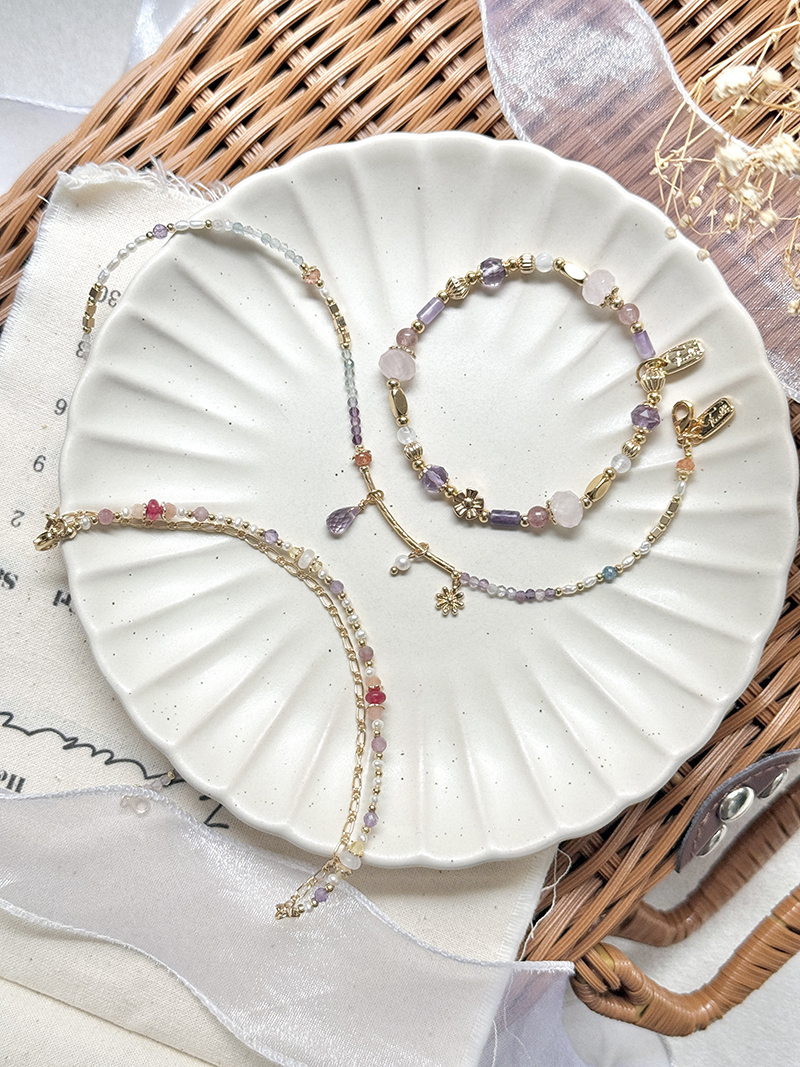 粉晶、紫幽靈、月光石、草莓晶、紫黃水晶、黃銅鍍18K金