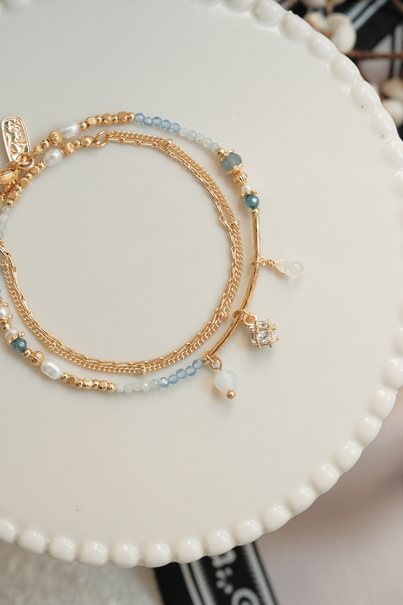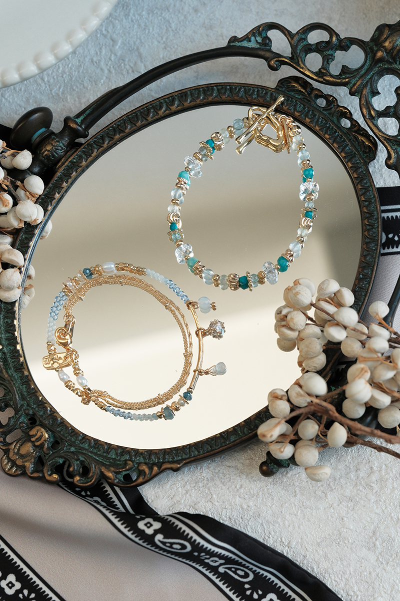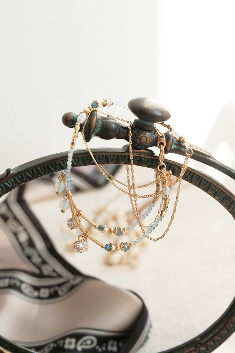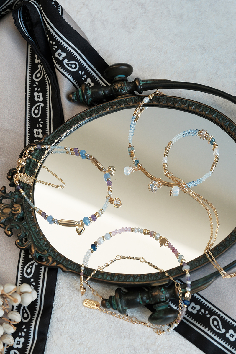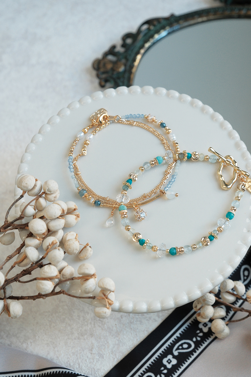 海藍寶、托帕石、蛋白石、月光石、淡水珍珠、藍鋯石、黃銅鍍18K金