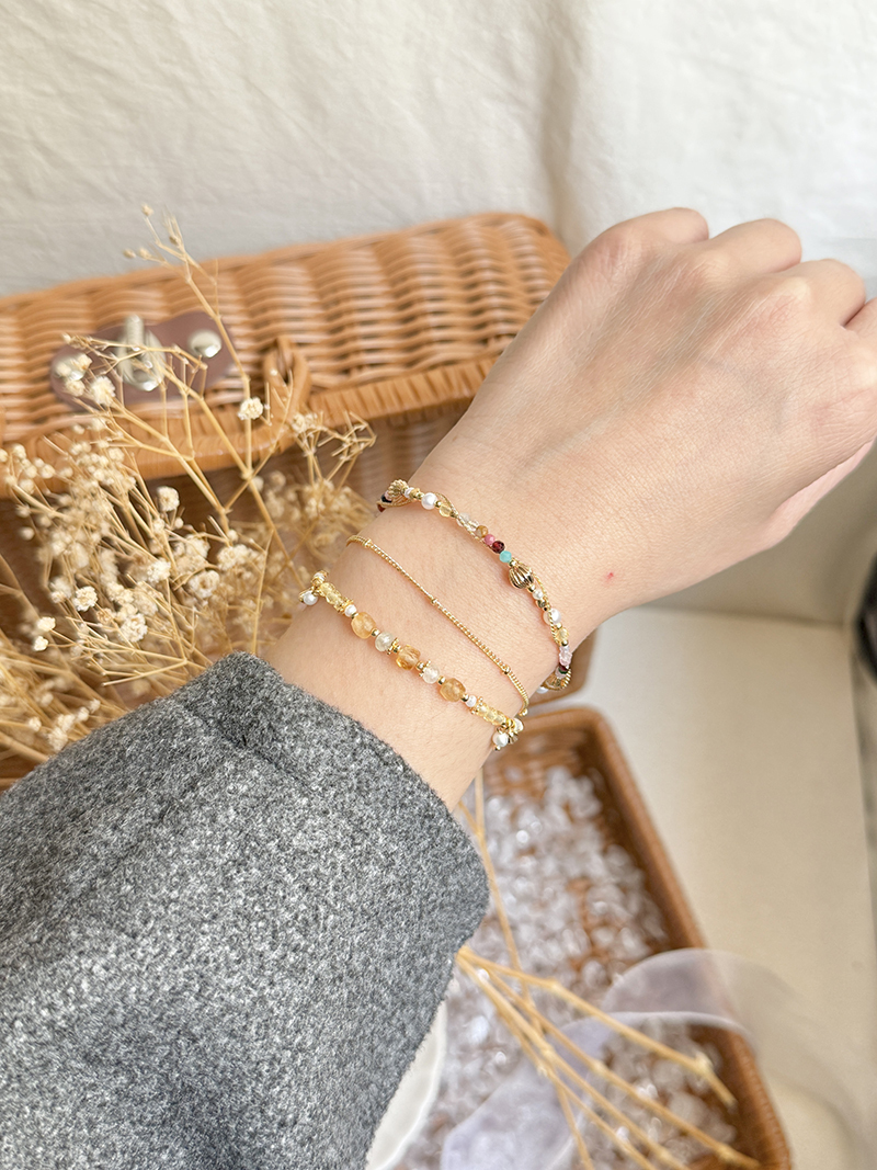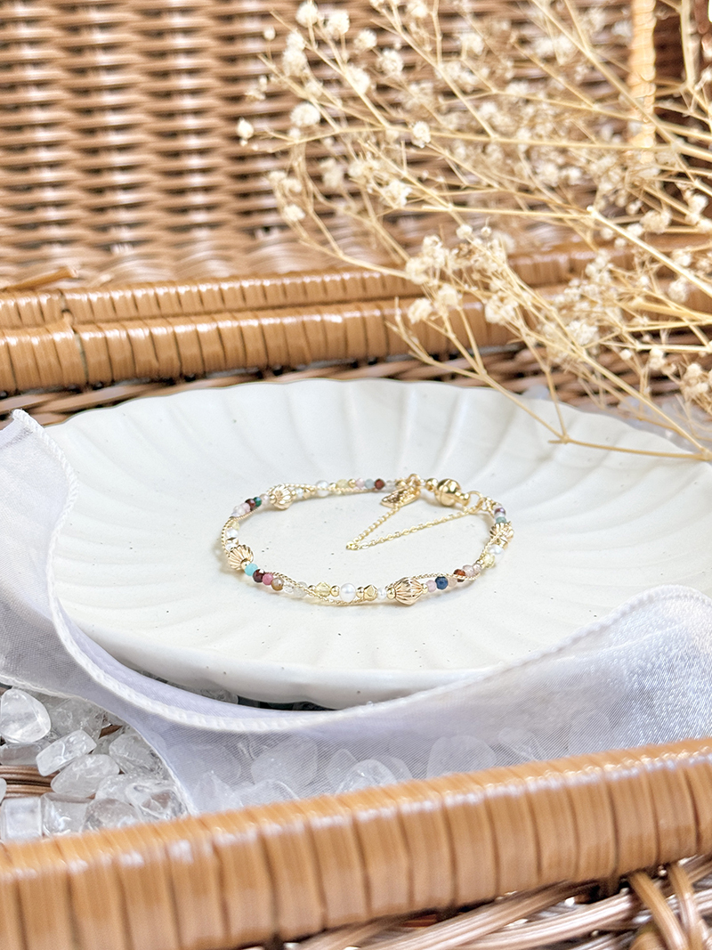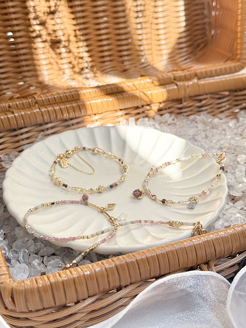 天河石、石榴石、黃水晶、祖母綠、草莓晶、淡水珍珠、粉貓眼石、青金石、黃銅鍍18K金