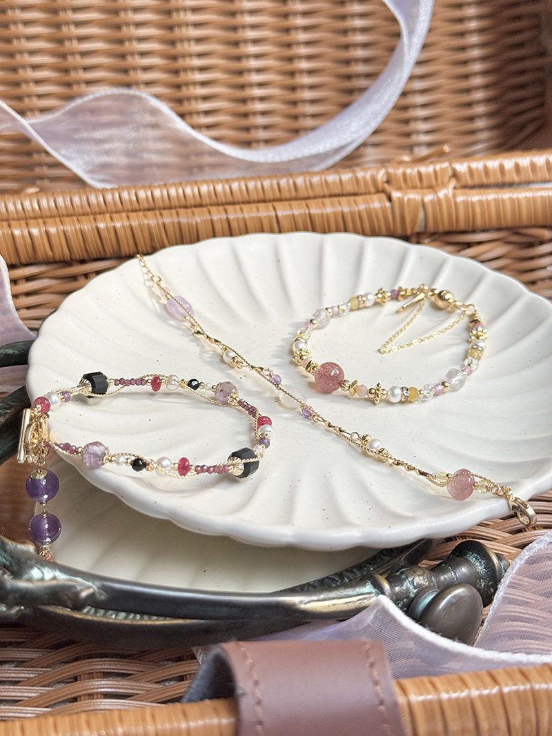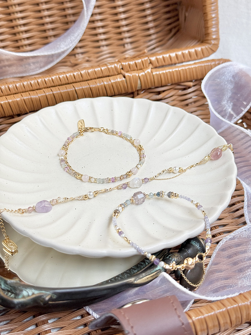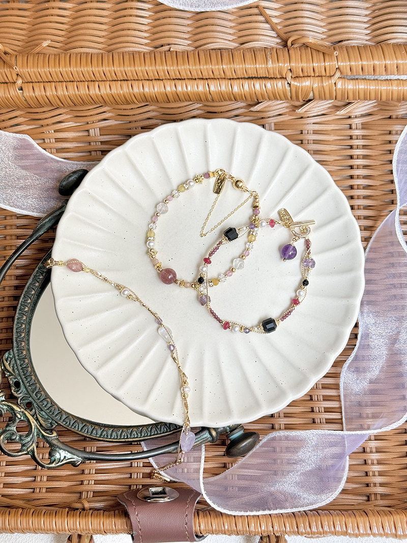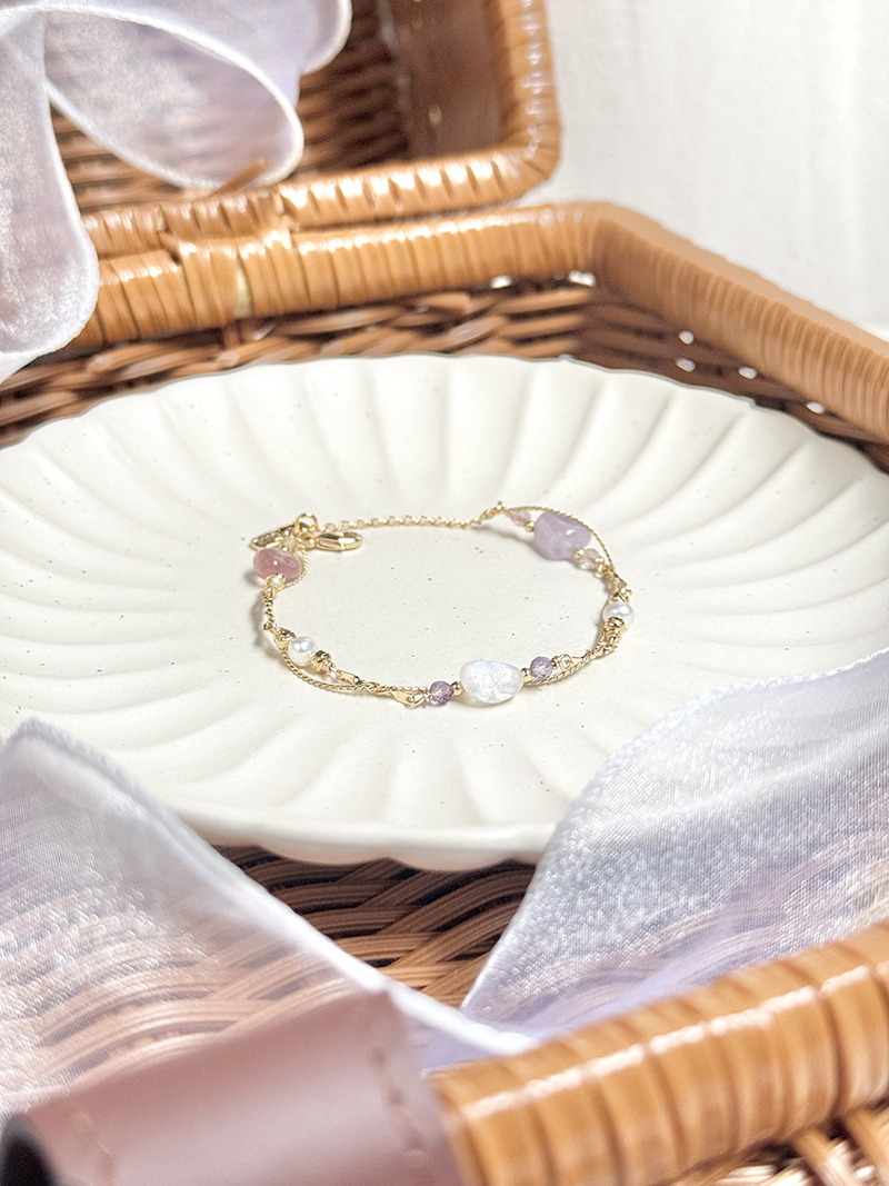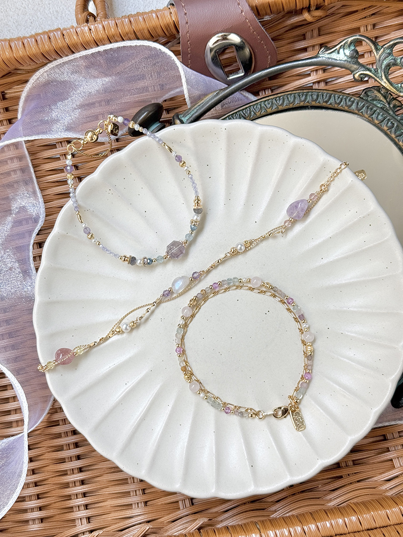 月光石、紫水晶、草莓晶、淡水珍珠、黃水晶、黃銅鍍18K金