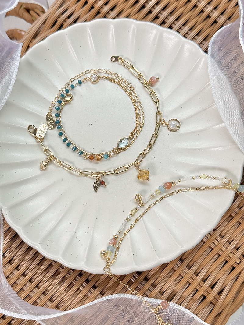 托帕石、淡水珍珠、橙石榴石、黃水晶、黃銅鍍18K金
