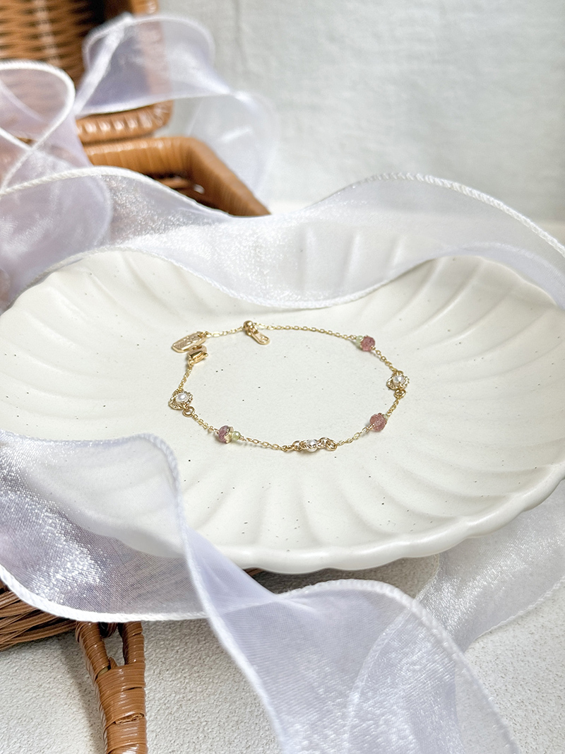 淡水珍珠、草莓晶、橄欖石、黃銅鍍18K金