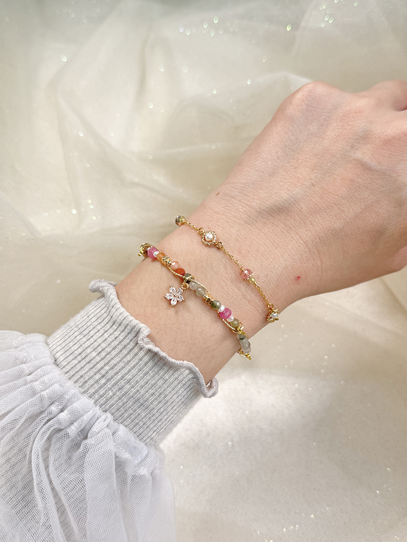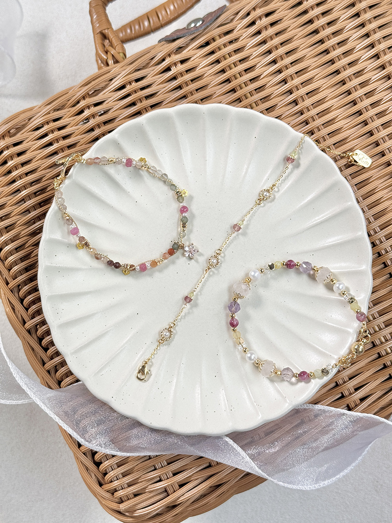 漸層鹽源瑪瑙、粉碧璽、淡水珍珠、黃銅鍍18k金