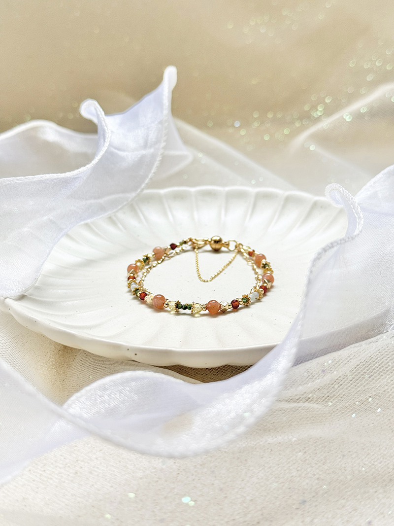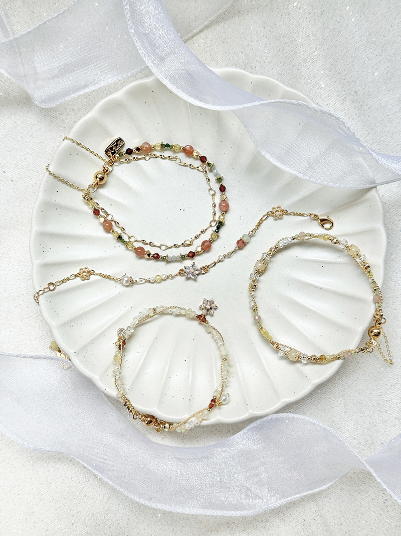 太陽石、橙石榴石、黃水晶、綠碧璽、緬甸玉、黃銅鍍18K金