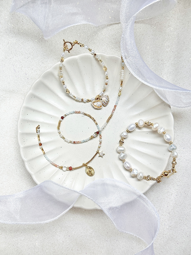摩根石、太陽石、淡水珍珠、黃水晶、橙石榴石、鋯石、金草莓晶、海藍寶、黃銅鍍18K金