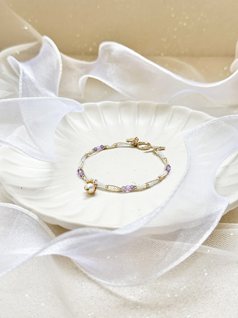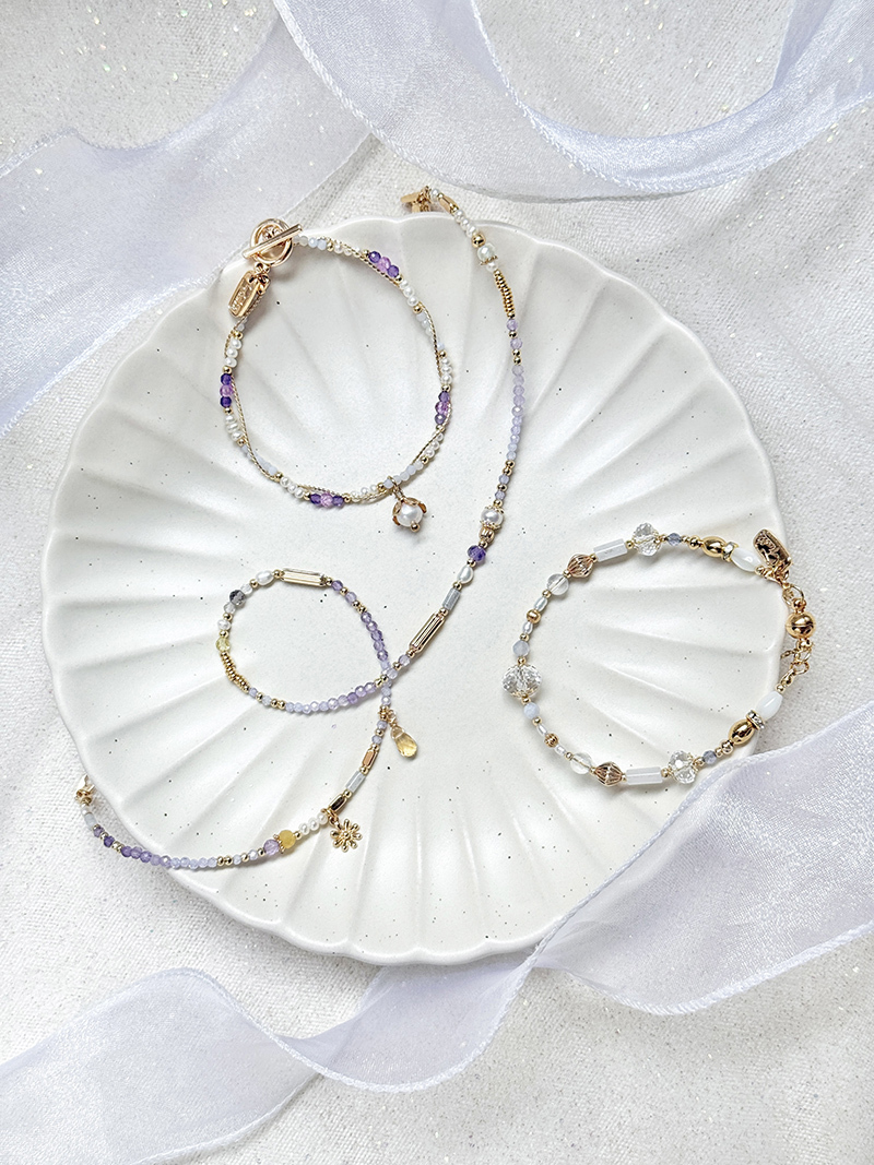 藍紋瑪瑙、淡水珍珠、紫水晶、黃銅鍍18K金