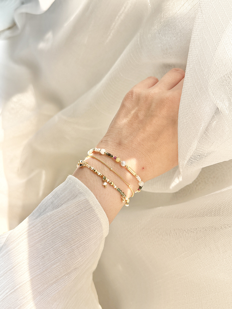 B05 / 生日花 • 伍月參 • 雉眼水仙 – 珍珠月光石 – 手鍊