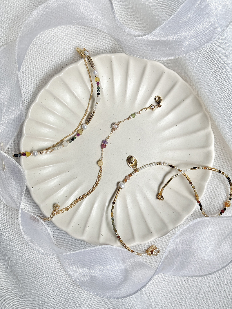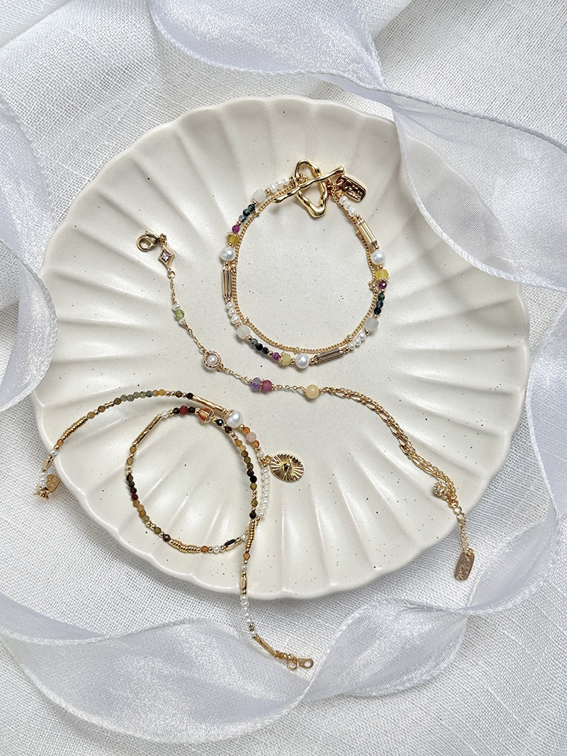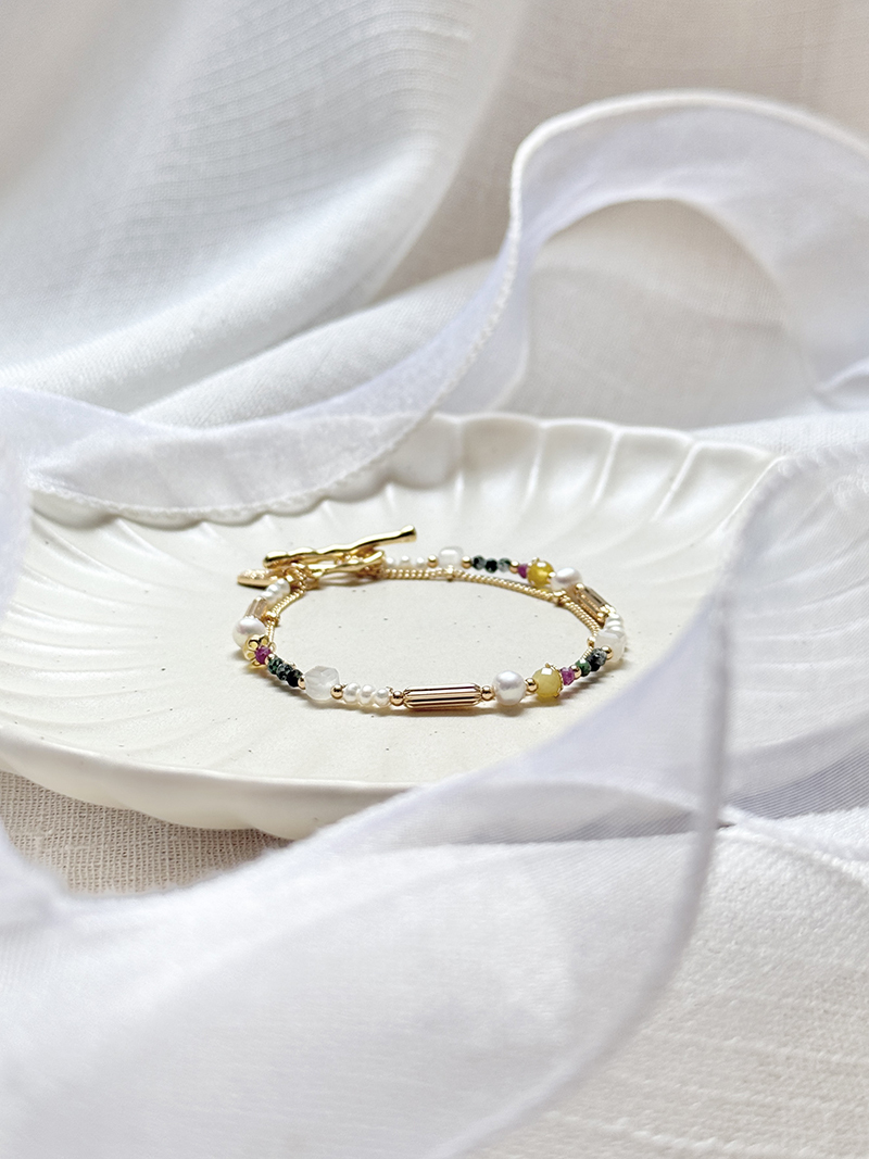 月光石、淡水珍珠、黃蛋白石、淡水珍珠、紅綠寶石、黃銅鍍18K金