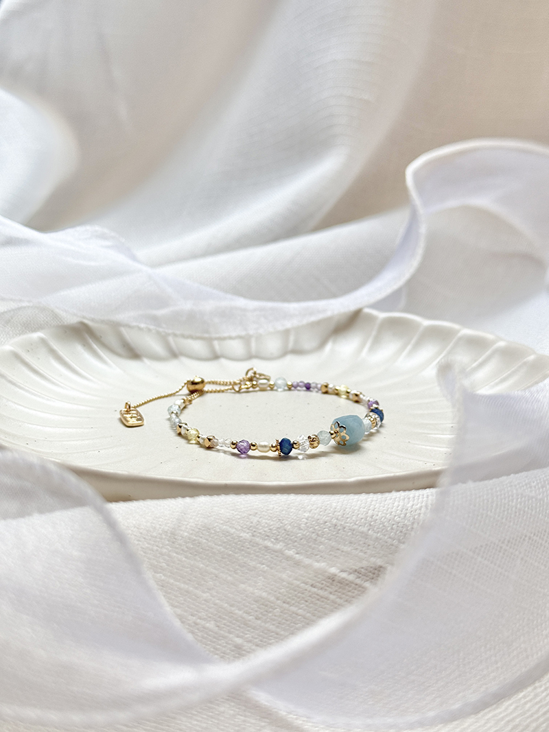 B07 / 生日花 • 柒月拾陸 • 大花三色堇 – 海藍寶 – 手鍊
