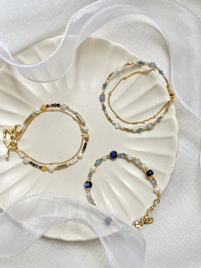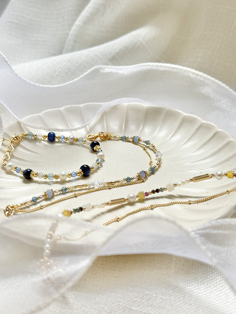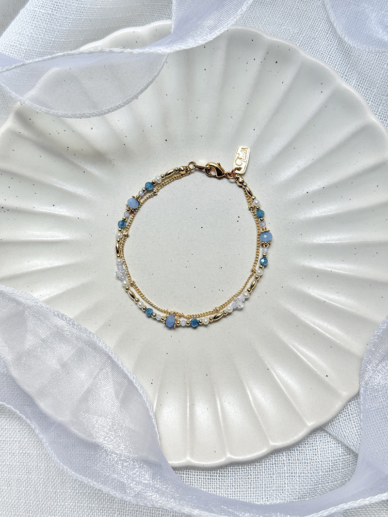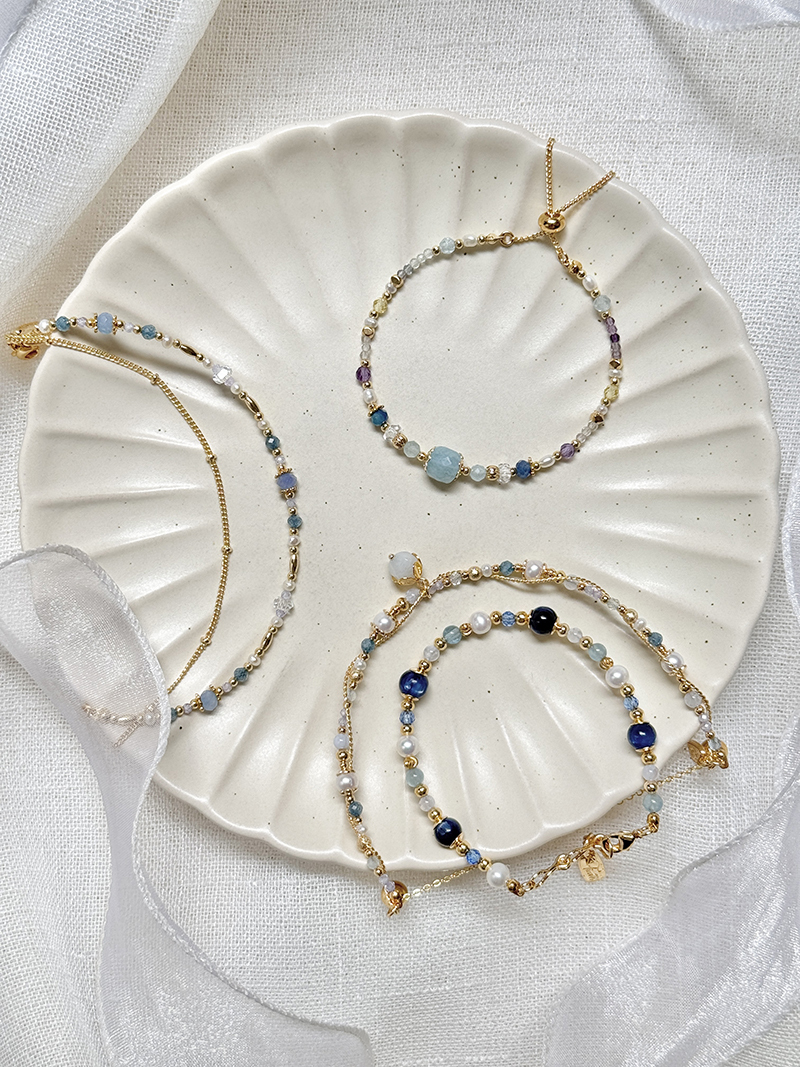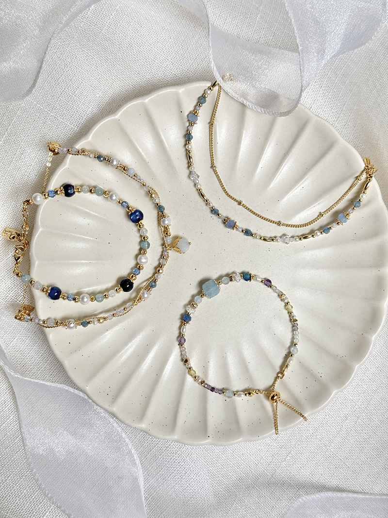 海藍寶、藍鋯石、紫鋯石、白水晶、淡水珍珠、黃銅鍍18K金